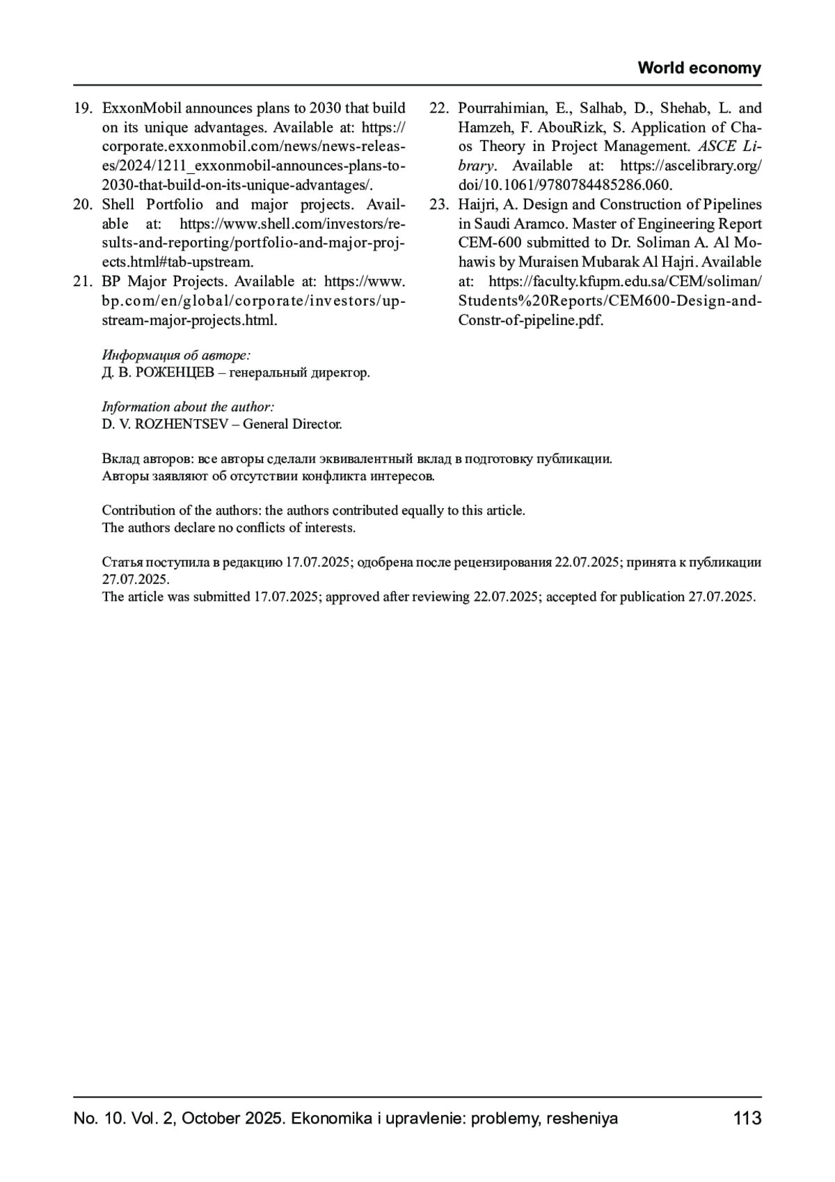 1. Olugbenga O. et al. Cost Overruns in Hydrocarbon Megaprojects: A Critical Review and Implications for Research // Project Management Journal. December 2015/January 2016. P. 126138. URL:. DOI: 10.1002/pmj