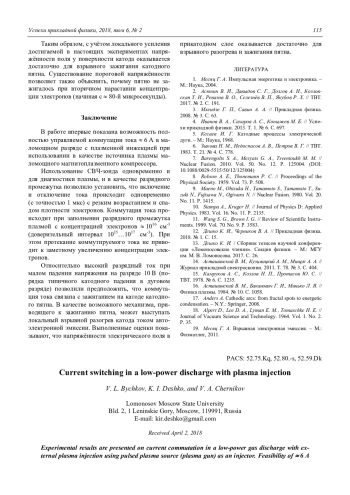 V. L. Bychkov, K. I. Deshko, and V. A. Chernikov Current switching in a low-power discharge with plas-ma injection 111