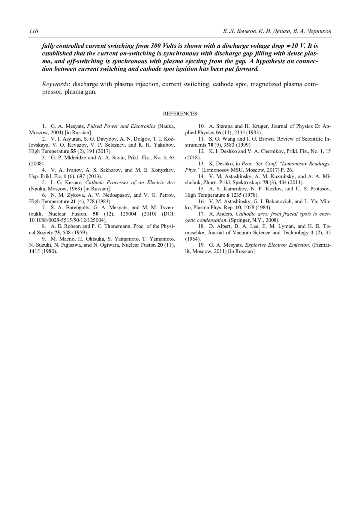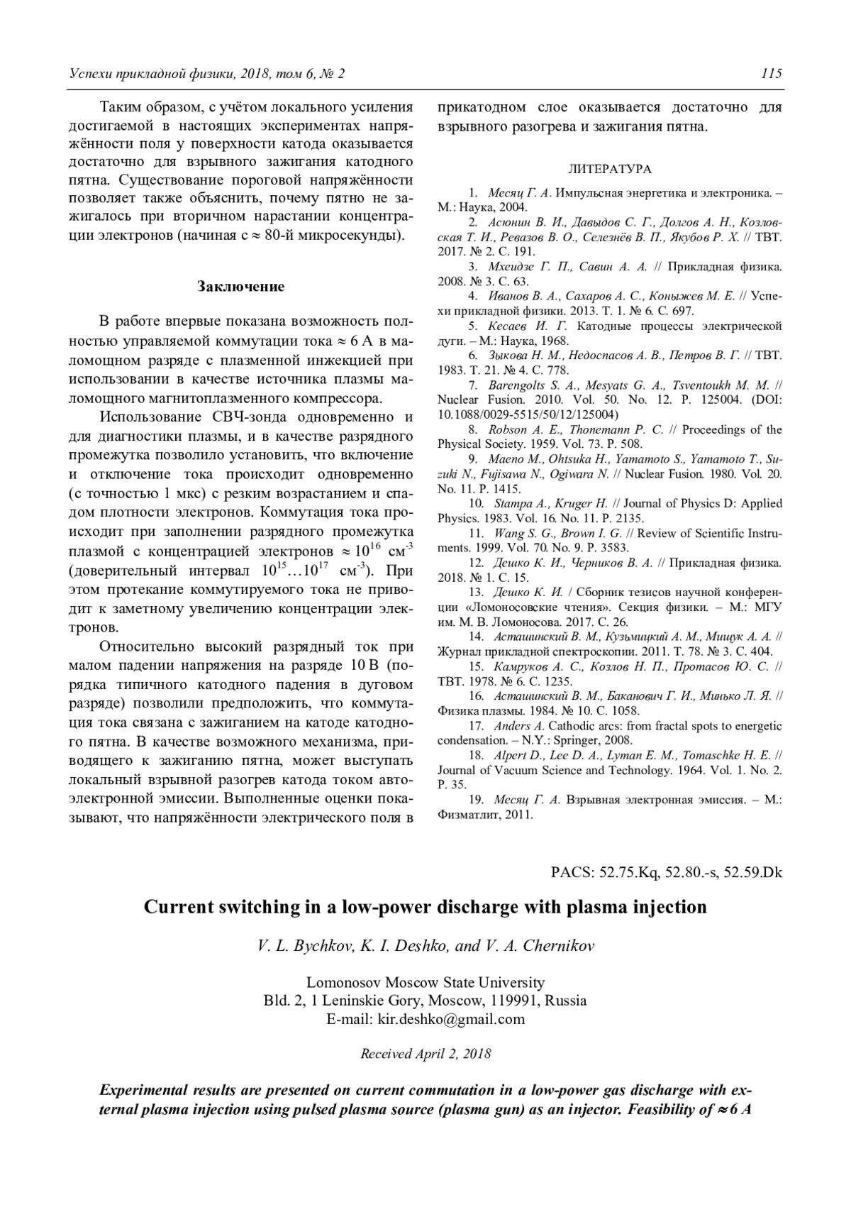 12. Дешко К. И., Черников В. А. // Прикладная физика. 2018. № 1. С. 15.