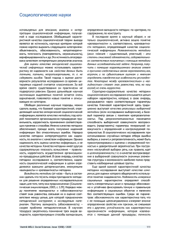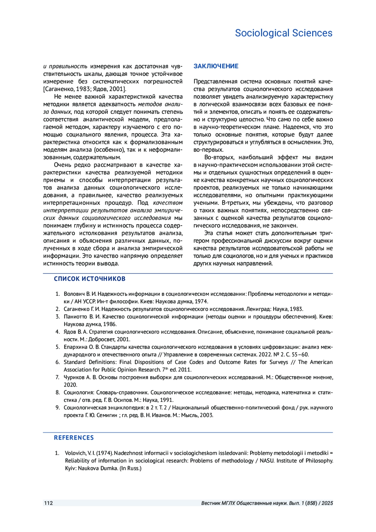Статья: КАЧЕСТВО РЕЗУЛЬТАТОВ СОЦИОЛОГИЧЕСКОГО ИССЛЕДОВАНИЯ В СИСТЕМЕ ОСНОВНЫХ НАУЧНЫХ ПОНЯТИЙ И КАТЕГОРИЙ (2025)
