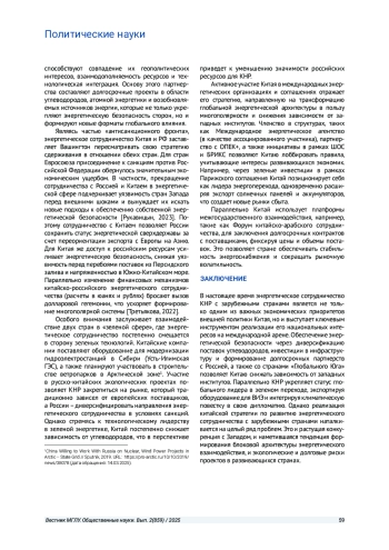 Статья: ЭНЕРГЕТИЧЕСКОЕ СОТРУДНИЧЕСТВО КИТАЯ С ИНОСТРАННЫМИ ГОСУДАРСТВАМИ КАК ПРИОРИТЕТ ЕГО ВНЕШНЕЙ ПОЛИТИКИ (2025)