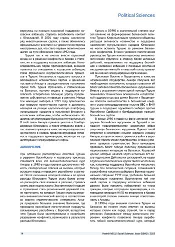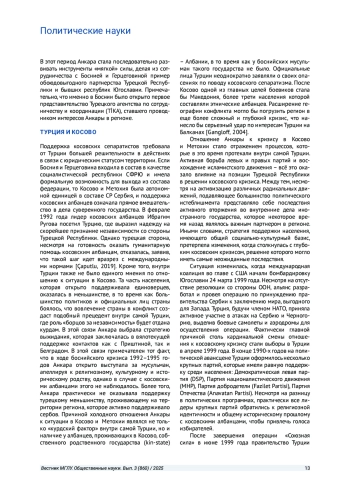 Статья: ВЛИЯНИЕ РАСПАДА ЮГОСЛАВИИ НА ФОРМИРОВАНИЕ БАЛКАНСКОГО НАПРАВЛЕНИЯ ВНЕШНЕЙ ПОЛИТИКИ ТУРЦИИ (1991-1998) (2025)