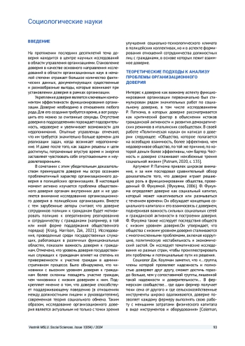 15. Гордеева С. С., Маркова Ю. С. Роль организационного доверия в обеспечении эффективности и продуктивности деятельности современной организации (опыт зарубежных исследований) // Вестник Пермского университета. Философия. Психология. Социология. 2021. Вып. 4. С. 654-661. EDN: GLMQEG