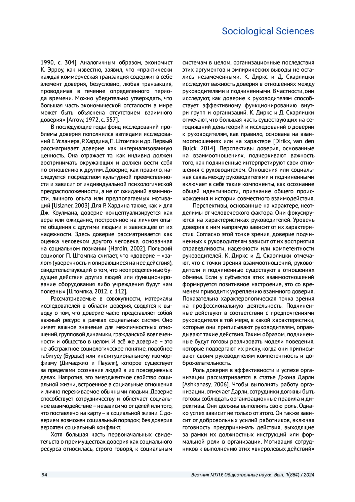 10. Ashkanasy N. M. Trust and Distrust in Organizations: Dilemmas and Approaches // Contemporary Sociology A Journal of Reviews. 2006. # 35(1). P. 1-18.