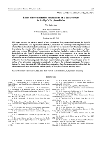 Влияние механизмов генерации-рекомбинации неосновных носителей заряда на темновой ток фотодиодов на основе HgCdTe Яковлева Н. И. 231