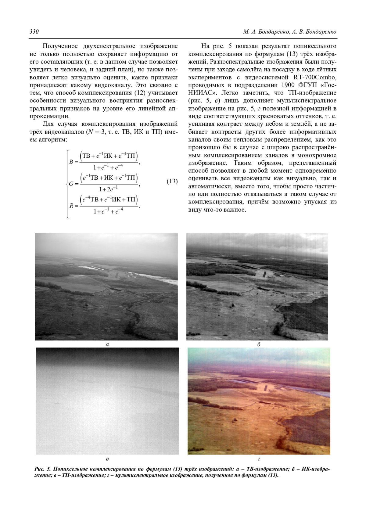 Бондаренко М. А., Бондаренко А. В. Формирование изображений в мультиспектральных видеосистемах для визуального и автоматического неразрушающего контроля 325