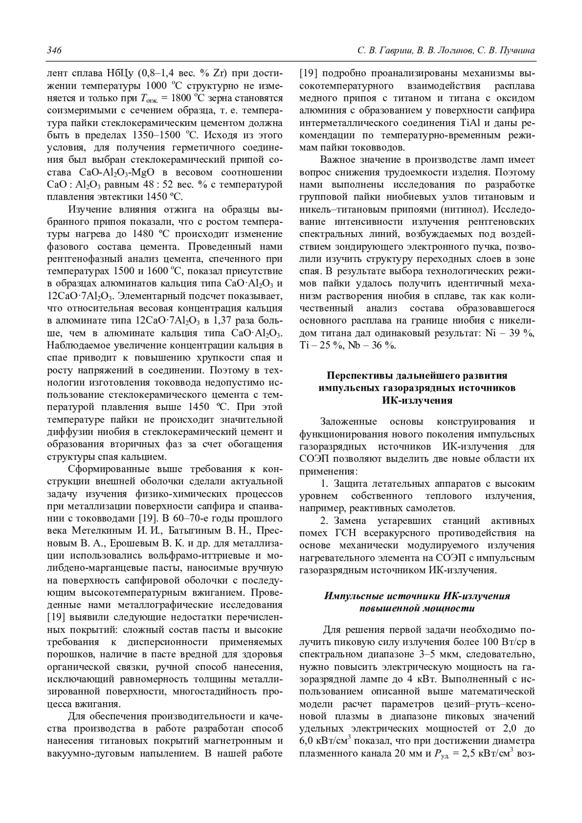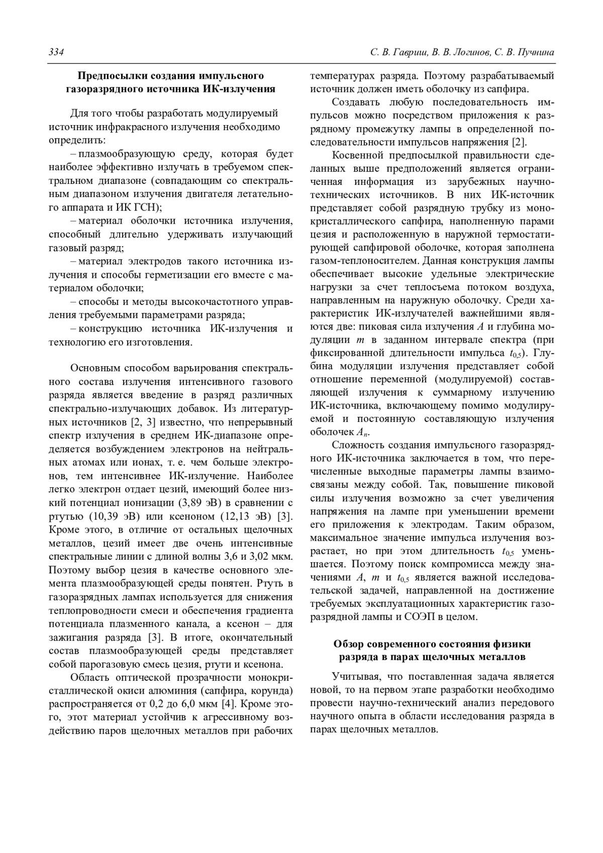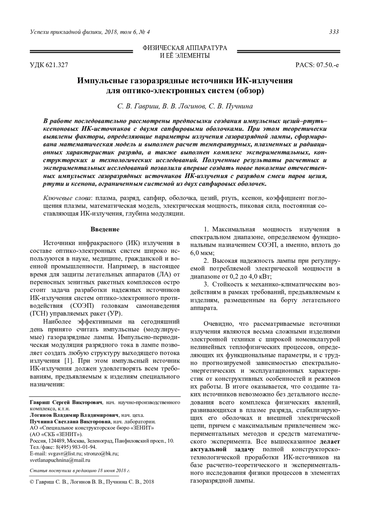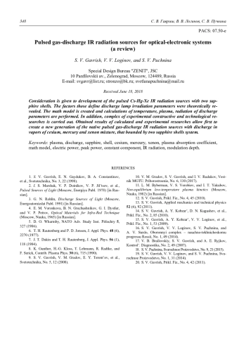 Гавриш С. В., Логинов В. В., Пучнина С. В. Импульсные газоразрядные источники ИК-излучения для оптико-электронных систем (обзор) 333