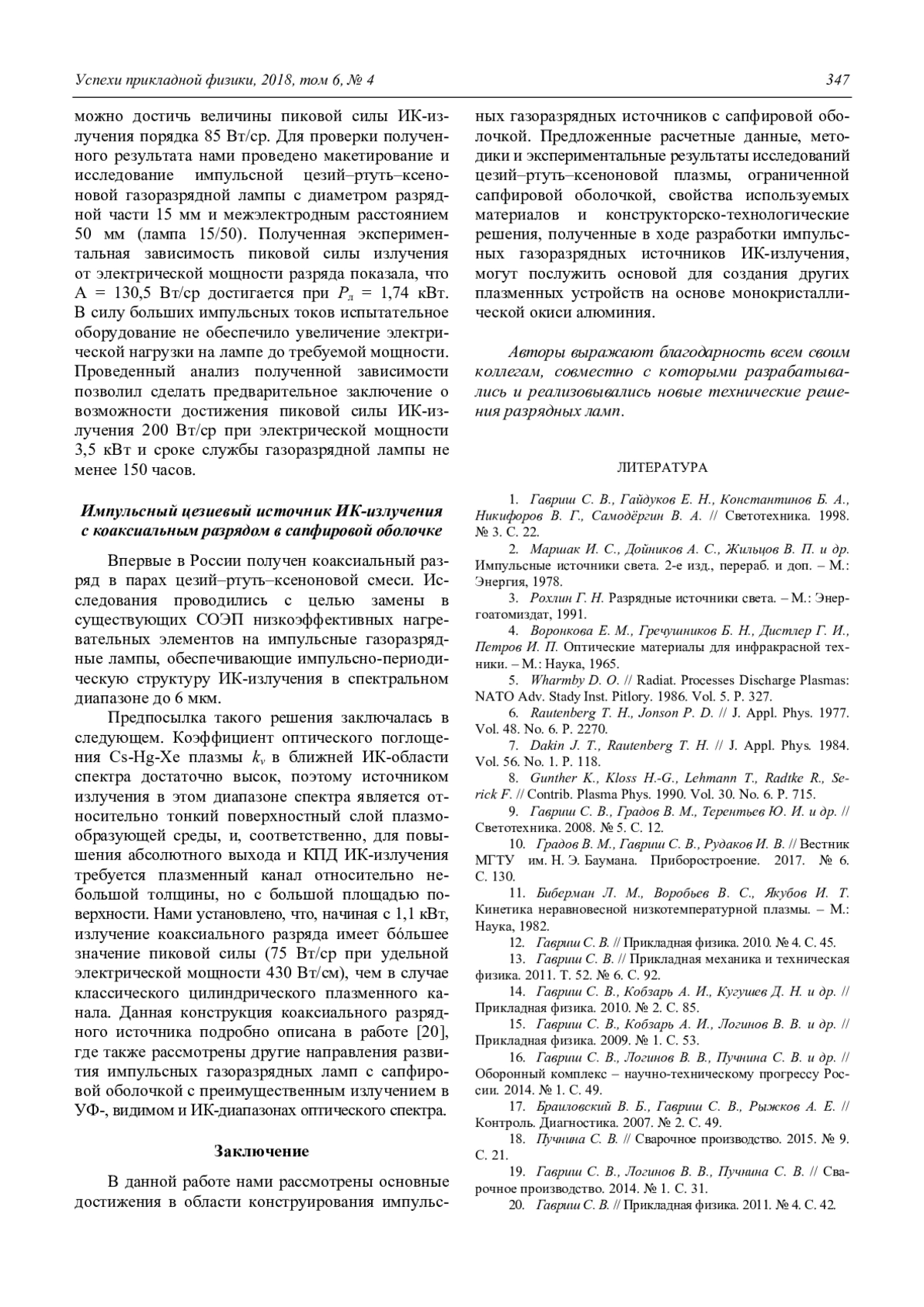 20. Гавриш С. В. // Прикладная физика. 2011. № 4. С. 42.