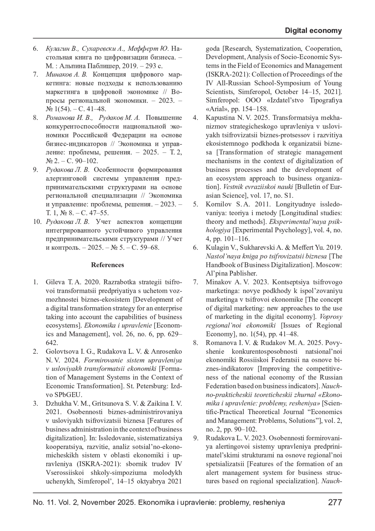 4. Капустина Н. В. Трансформация механизмов стратегического управления в условиях цифровизации бизнес-процессов и развития экосистемного подхода к организации бизнеса // Вестник евразийской науки. - 2025. - Т. 17, № S1. EDN: JNKELK