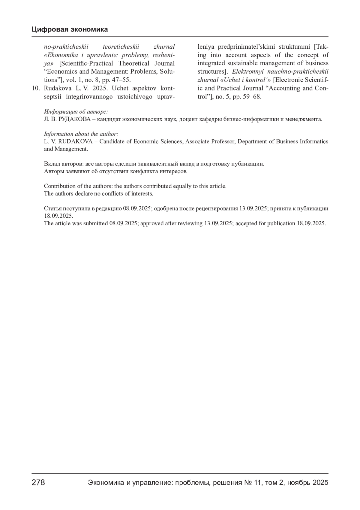 10. Рудакова Л. В. Учет аспектов концепции интегрированного устойчивого управления предпринимательскими структурами // Учет и контроль. - 2025. - № 5. - С. 59-68. EDN: RGVWBT