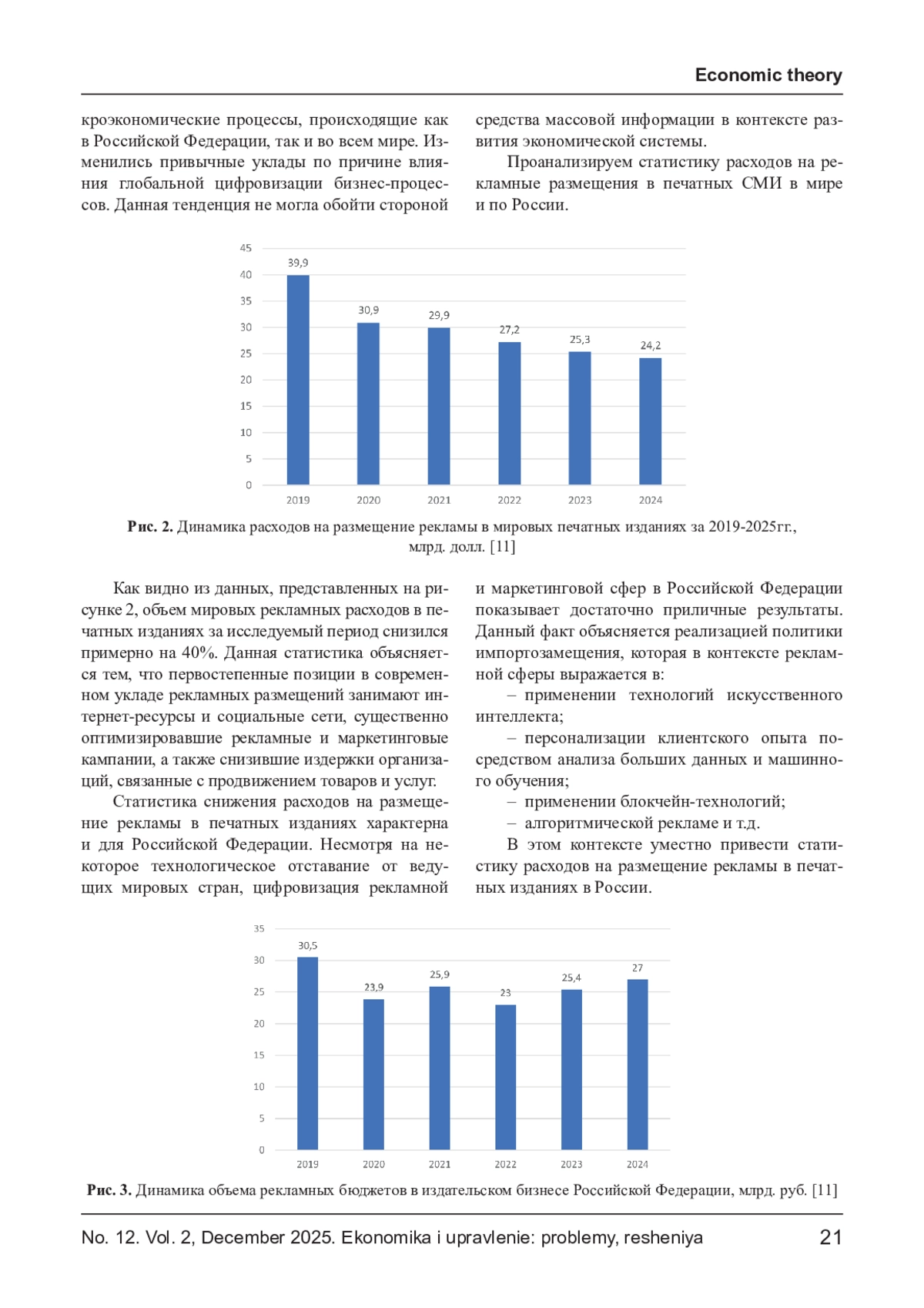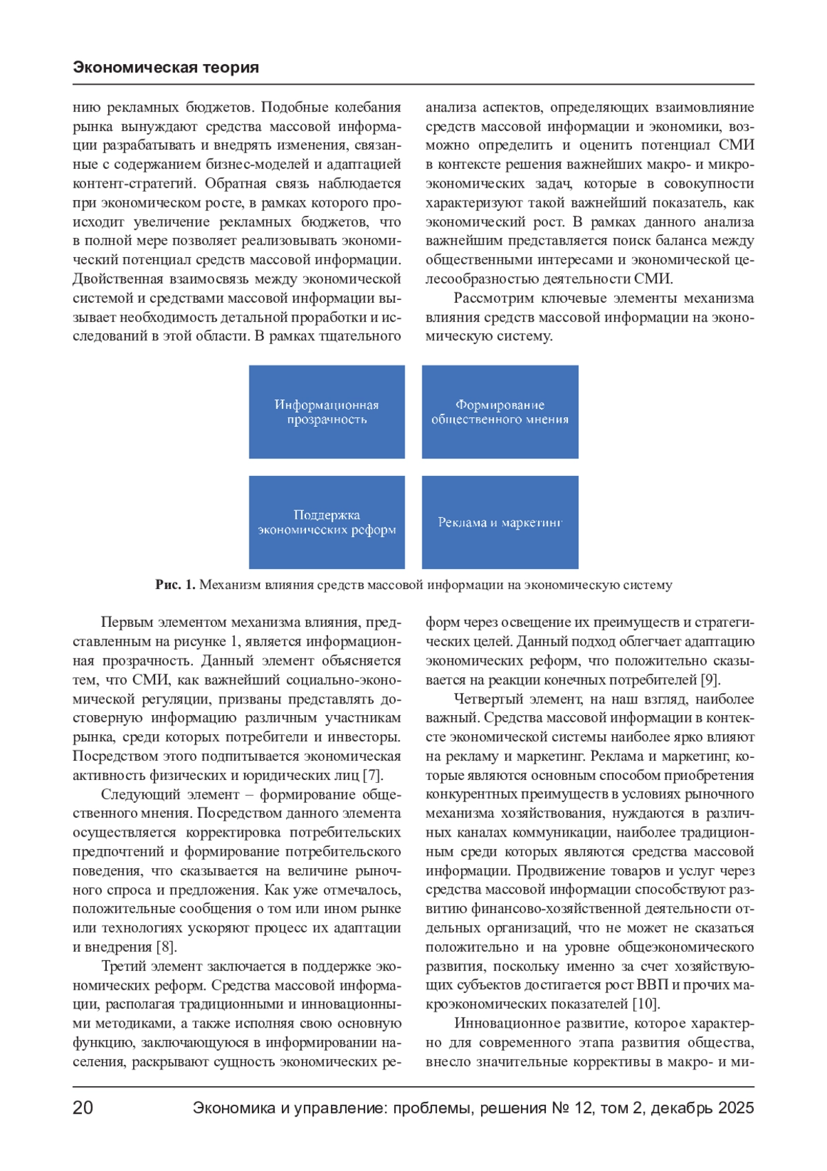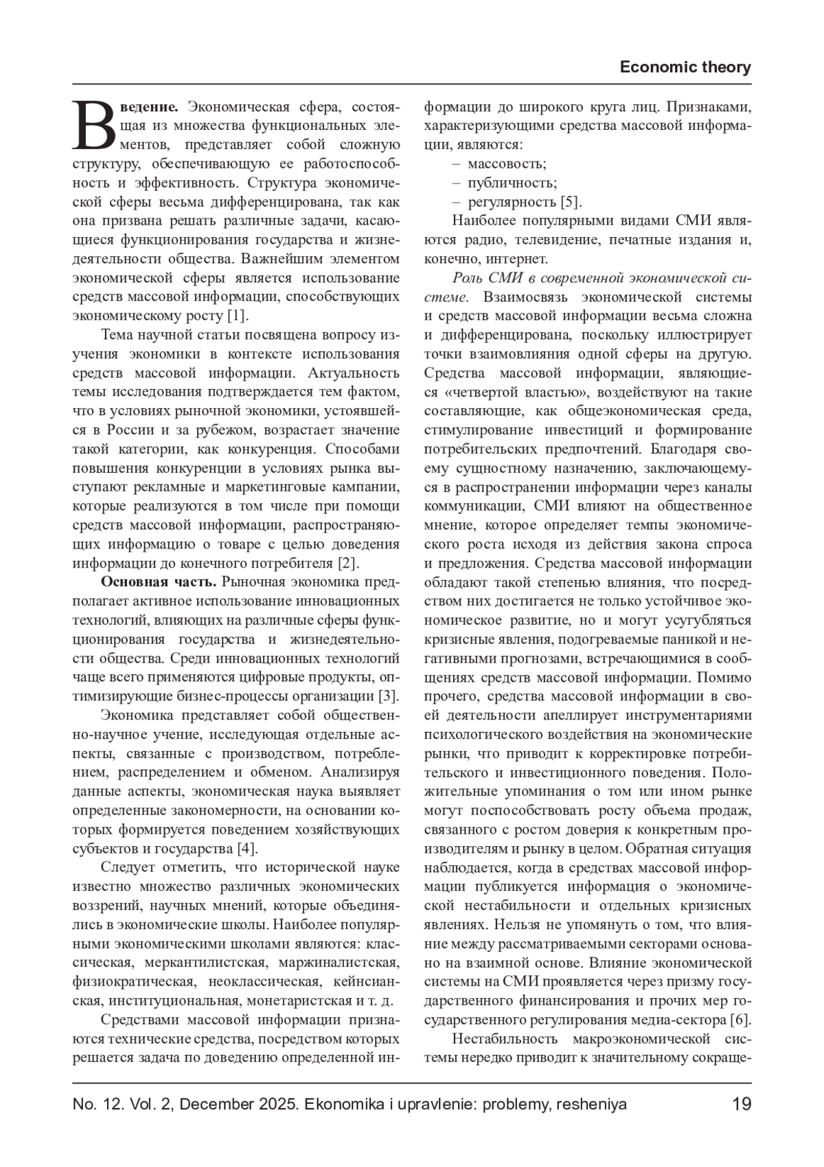 1. Прусакова Д. А. Иньков В. Л. Роль цифровых масс-медиа в современной экономике // Финансовые рынки и банки. - 2021. - № 7. - URL: https://cyberleninka.ru/article/n/rol-tsifrovyh-mass-media-v-sovremennoy-ekonomike (дата обращения: 09.11.2025).