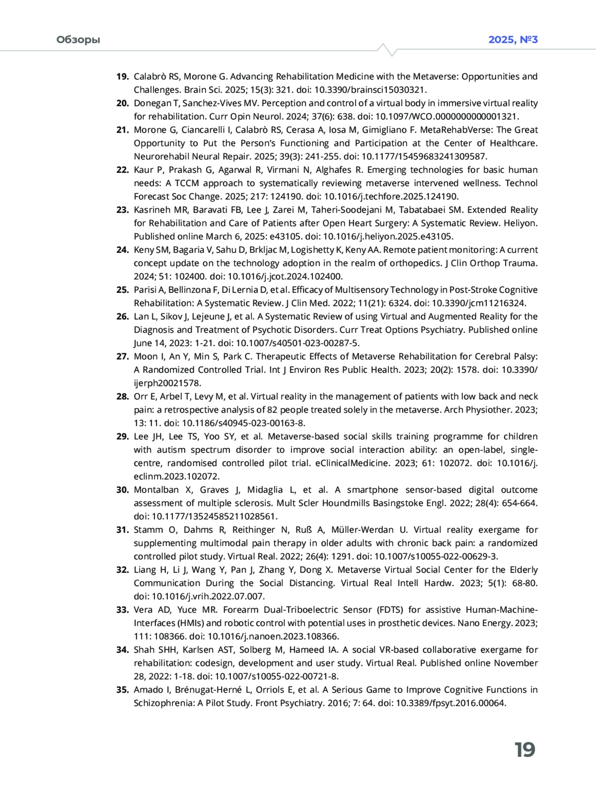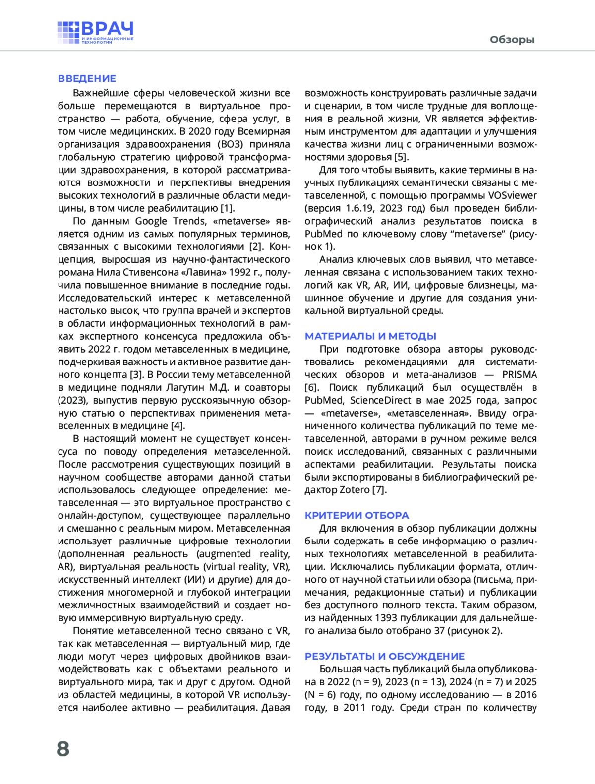 Статья: ТЕХНОЛОГИИ РЕАБИЛИТАЦИИ В МЕТАВСЕЛЕННОЙ: УСТОЙЧИВЫЙ ТРЕНД ИЛИ КОНТЕКСТНЫЕ РЕШЕНИЯ? (СИСТЕМАТИЧЕСКИЙ ОБЗОР) (2025)