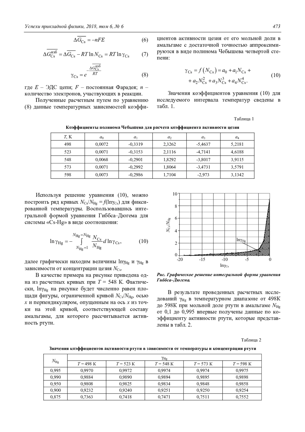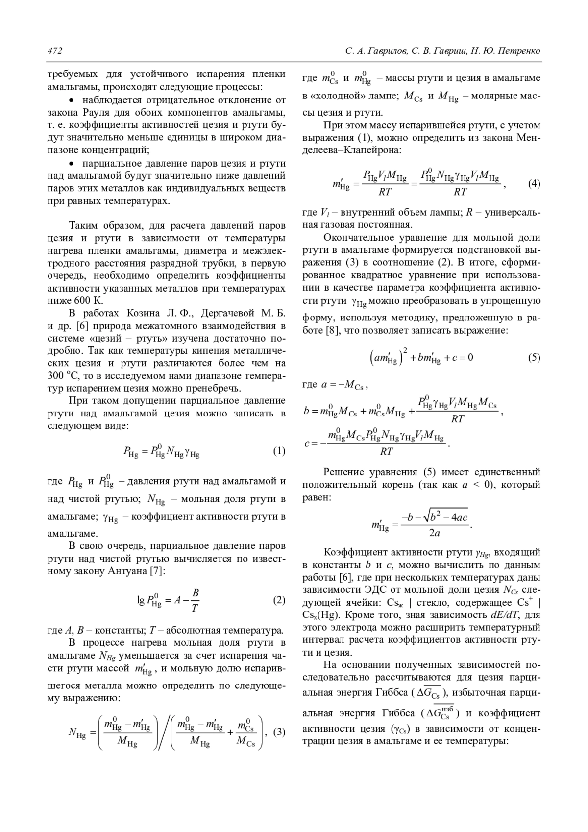 ГАВРИЛОВ С. А., ГАВРИШ С., ПЕТРЕНКО Н. Ю. ТЕРМОДИНАМИКА ИСПАРЕНИЯ АМАЛЬГАМЫ ЦЕЗИЯ В ГАЗОРАЗРЯДНЫХ ПРИБОРАХ // УСПЕХИ ПРИКЛАДНОЙ ФИЗИКИ. 2018. ТОМ 6, №6