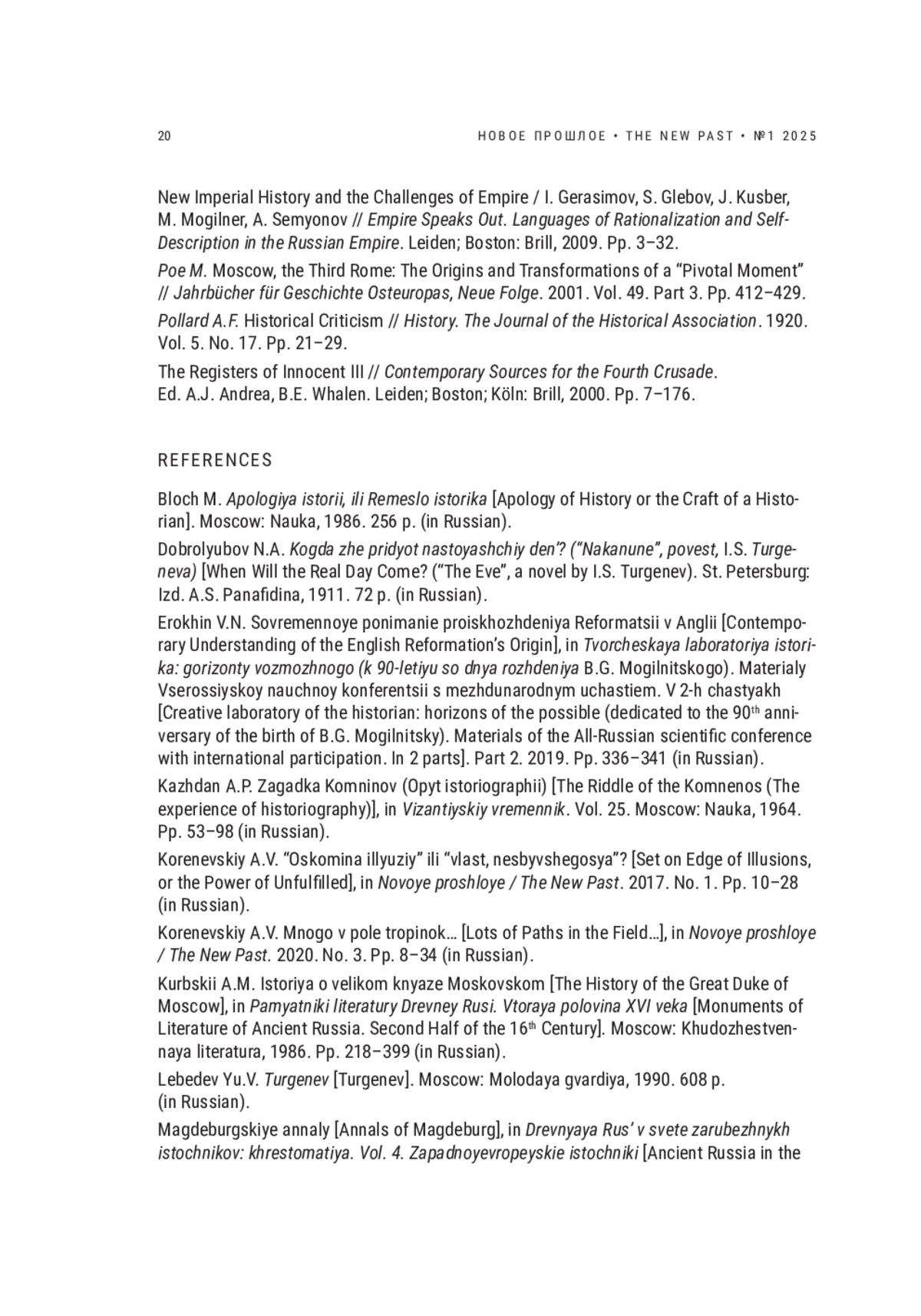 32. Korenevskiy A.V. Mnogo v pole tropinok… [Lots of Paths in the Field…], in Novoye proshloye / The New Past. 2020. No. 3. Pp. 8-34 (in Russian).