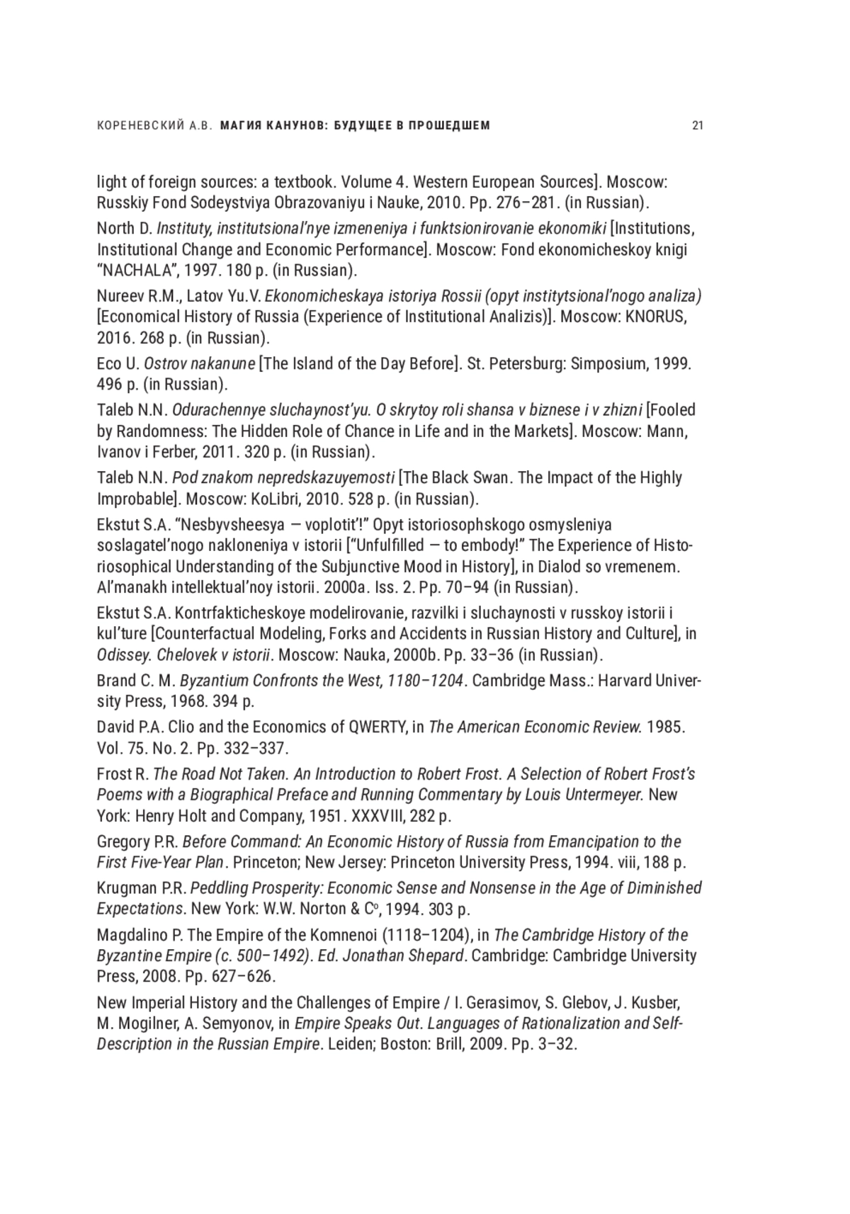 16. Экштут С.А. Контрфактическое моделирование, развилки и случайности в русской истории и культуре // Одиссей. Человек в истории. М.: Наука, 2000b. С. 33-36.