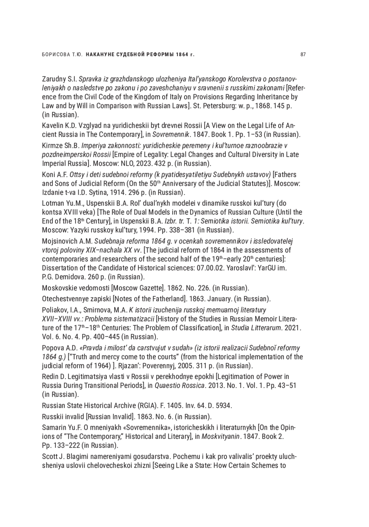 41. Vasilevsky A. Otzyvy russkikh zhurnalov i gazet o sudebnoi reforme (okonchanie) [Reviews of Russian Journals and Newspapers on Judicial Reform (conclusion)], in Zhurnal Ministerstva yustitsii. 1863b. Vol. XVI. Pp. 403-441 (in Russian).