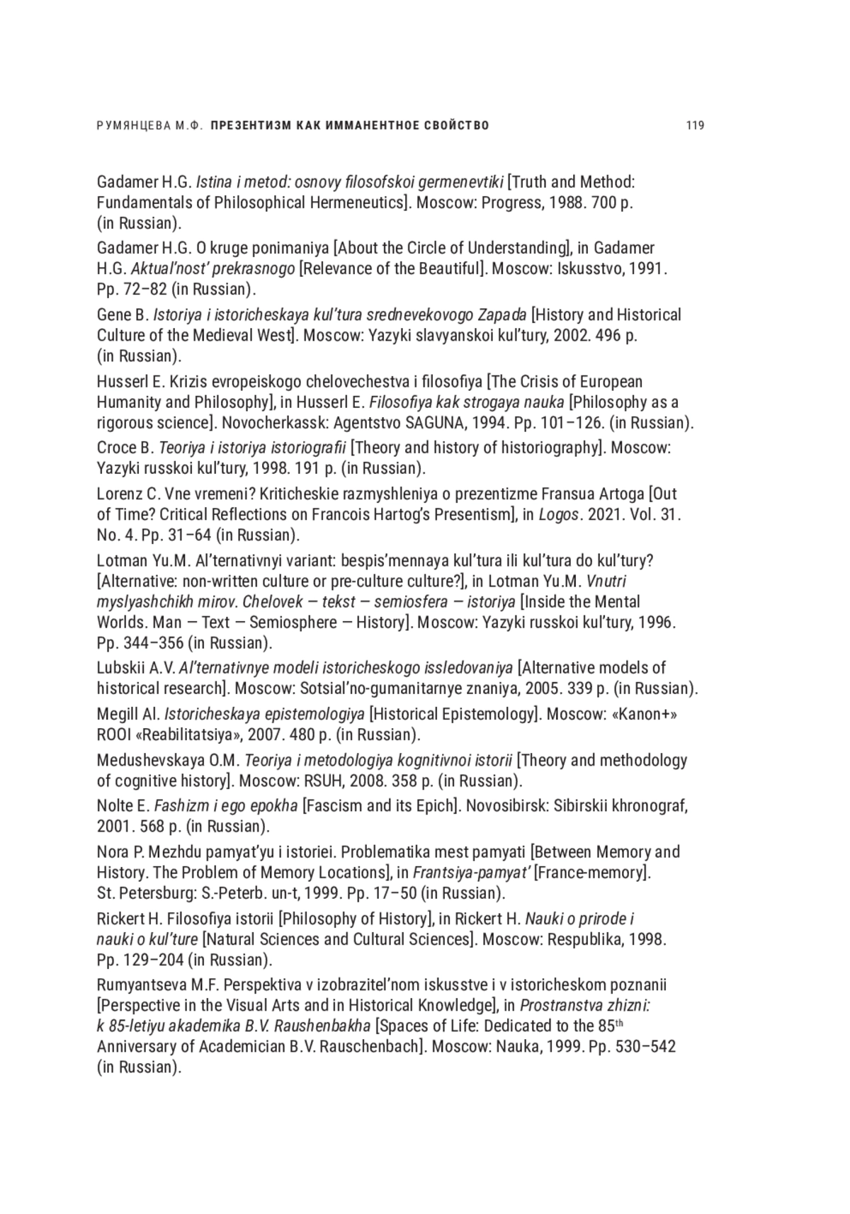 48. Lorenz C. Vne vremeni? Kriticheskie razmyshleniya o prezentizme Fransua Artoga [Out of Time? Critical Reflections on Francois Hartog’s Presentism], in Logos. 2021. Vol. 31. No. 4. Pp. 31-64 (in Russian). EDN: YVFZHL