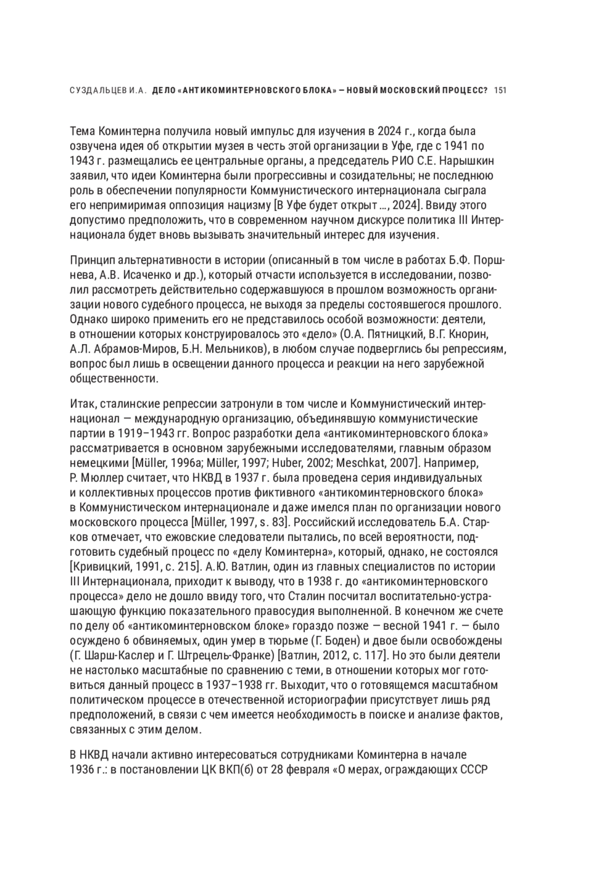 21. Huber P. Das Beispiel Komintern. Überwachung und Repression // Hedeler W. (Hg.): Stalinscher Terror 1934-1941. Eine Forschungsbilanz. Berlin: BasisDruck, 2002. S. 179-202.