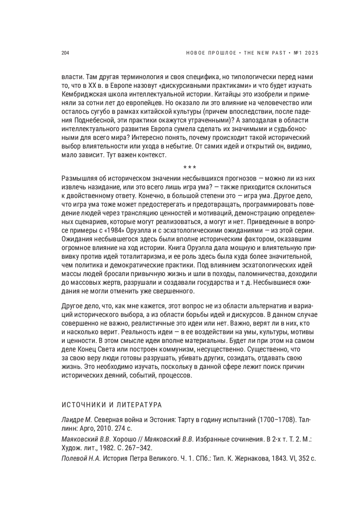 Обосновывается гипотеза о том, что презентизм является имманентной характеристикой исторического познания XX–первой четверти XXI в., а также предлагаются альтернативы его экстремальным формам в современной исторической культуре (с середины 2000-х гг.). Проблема презентизма рассматривается в соотнесении с концептом историческая культура. Актуальность данной проблематики обусловлена в первую очередь усилением необходимости экспликации имманентных характеристик научного/профессионального исторического познания в условиях расширения границ исторической культуры и разрыва внутри нее социально ориентированного историописания и истории как строгой науки. Теоретическую рамку исследования задает смена типов рациональности/моделей науки: от классической к неклассической, затем к постнеклассической в ситуации постмодерна, — и предпринимается попытка концептуализации новой исторической культуры в ситуации постпостмодерна. При анализе презентизма последней трети XX в. концепция «режимов историчности» Ф. Артога дополняется идеей «конца истории» Ф. Фукуямы и теорией нарратива (Х. Уайт, Ф. Анкерсмит). Сделан вывод о концептуальных различиях презентизма первой трети XX в., жестко обусловленного становлением неклассической модели науки, и презентизма последних десятилетий XX в., обусловленного постнеклассической моделью науки и исторической культурой постмодерна. Предлагается гипотеза нового варианта презентизма в исторической культуре первой четверти XXI в., фактором формирования которого является постпостмодерн и соответствующая ему историческая культура, базовым свойством которой стал процесс ренарративизации после кризиса метанарратива эпохи постмодерна