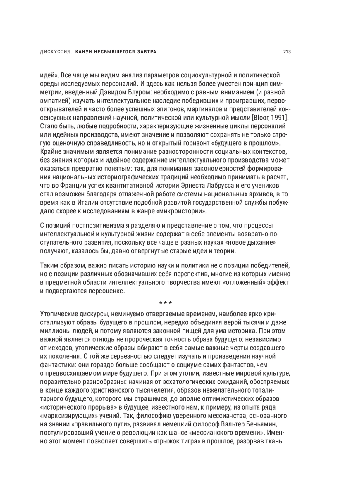 Проблема гипотетических рассуждений об альтернативности прошлого и необходимости изучения образов будущего в прошлом рассматривается сквозь призму теории современных социогуманитарных наук. Отмечается важность факторов непредвиденного в жизни людей и законность профессионального интереса историка как к мотивам исторических акторов, так и к альтернативным реконструкциям прошлого, вызывающим дискуссии о закономерности тех или иных явлений прошлого. Отмечается роль Р. Козеллека, привнесшего в историографию феноменологическую трактовку исторического времени как смены «теперь» — цепи событий, связанных «пространством опыта» и «горизонтами ожидания» живущих поколений, подчеркивается также значимость его представлений о рекурсивной связи «слоев времени», вбирающих в себя и жизнь человека, и бытование длительно существующих социальных структур. Тема проживания исторических канунов современниками представлена в логике рассуждения о темпоральных дискурсах. Историк имеет свободу выбора: уделять ему внимание «подводным течениям» коллективного бессознательного или посвятить себя постфактуальному моделированию, руководствуясь непреложным знанием исходов. Историю победителей и побежденных следует, по мнению автора, писать с позиций симметричного их представления, с обозначением всех значимых контекстуальных нюансов их существования, а историю утопических дискурсов — с позиций того, что разделяемые массой людей убеждения сами становятся влиятельным фактором формирования будущего, даже если грядущее сформируется отличным от ожидаемого образом