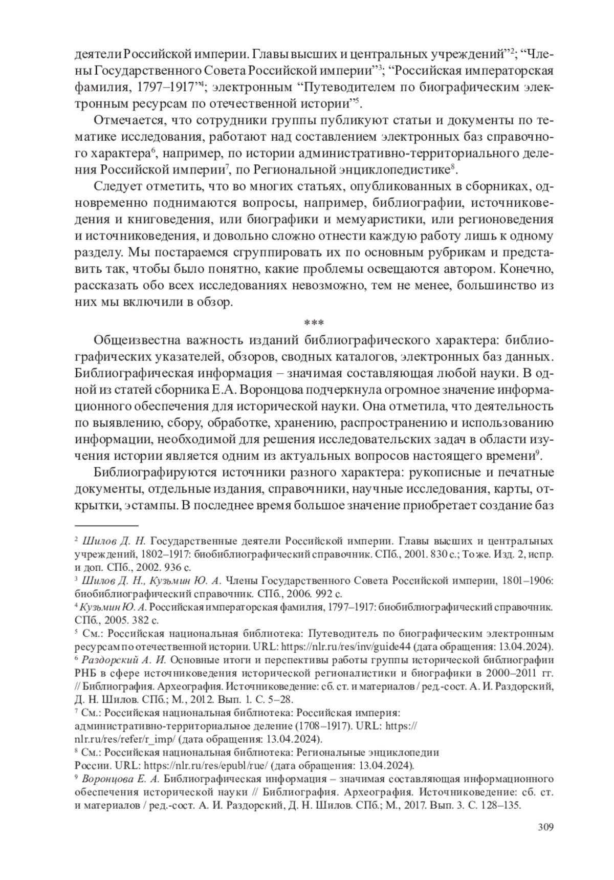 78. Вибе И. Н., Шилов Д. Н. Электронный ресурс “Биографические словари России” (содержание и перспективы развития) // Библиография. Археография. Источниковедение: сб. ст. и материалов / ред.-сост. А. И. Раздорский, Д. Н. Шилов. СПб., М., 2019. Вып. 4. С. 267-271. EDN: KDCFIH