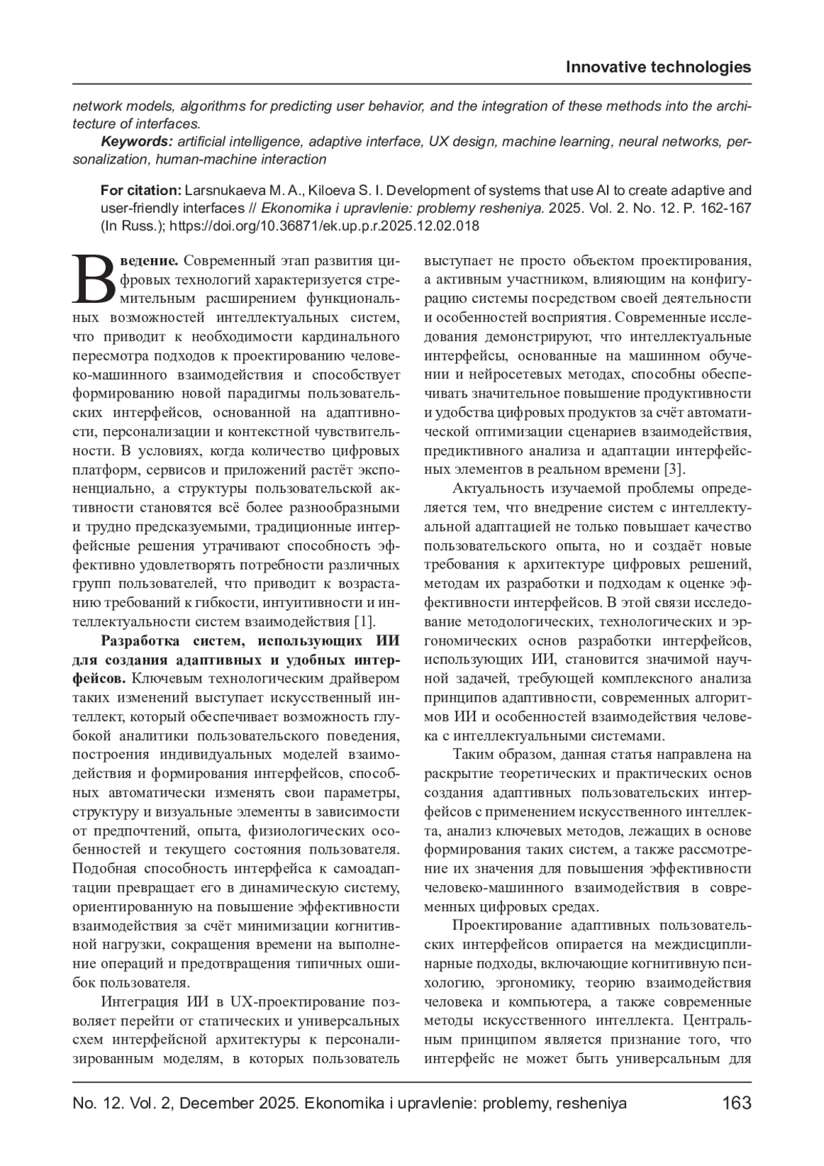 Современные цифровые системы предъявляют высокие требования к удобству и персонализации пользовательских интерфейсов, что делает использование методов искусственного интеллекта особенно актуальным. Адаптивные интерфейсы, способные самостоятельно подстраиваться под индивидуальные особенности пользователя, уровень его опыта и контекст взаимодействия, становятся ключевым элементом повышения эффективности и качества цифровых продуктов. В статье рассматриваются теоретические и практические аспекты разработки таких интерфейсов с использованием ИИ. Особое внимание уделено методам машинного обучения, нейросетевым моделям, алгоритмам прогнозирования поведения пользователей и интеграции этих методов в архитектуру интерфейсов.