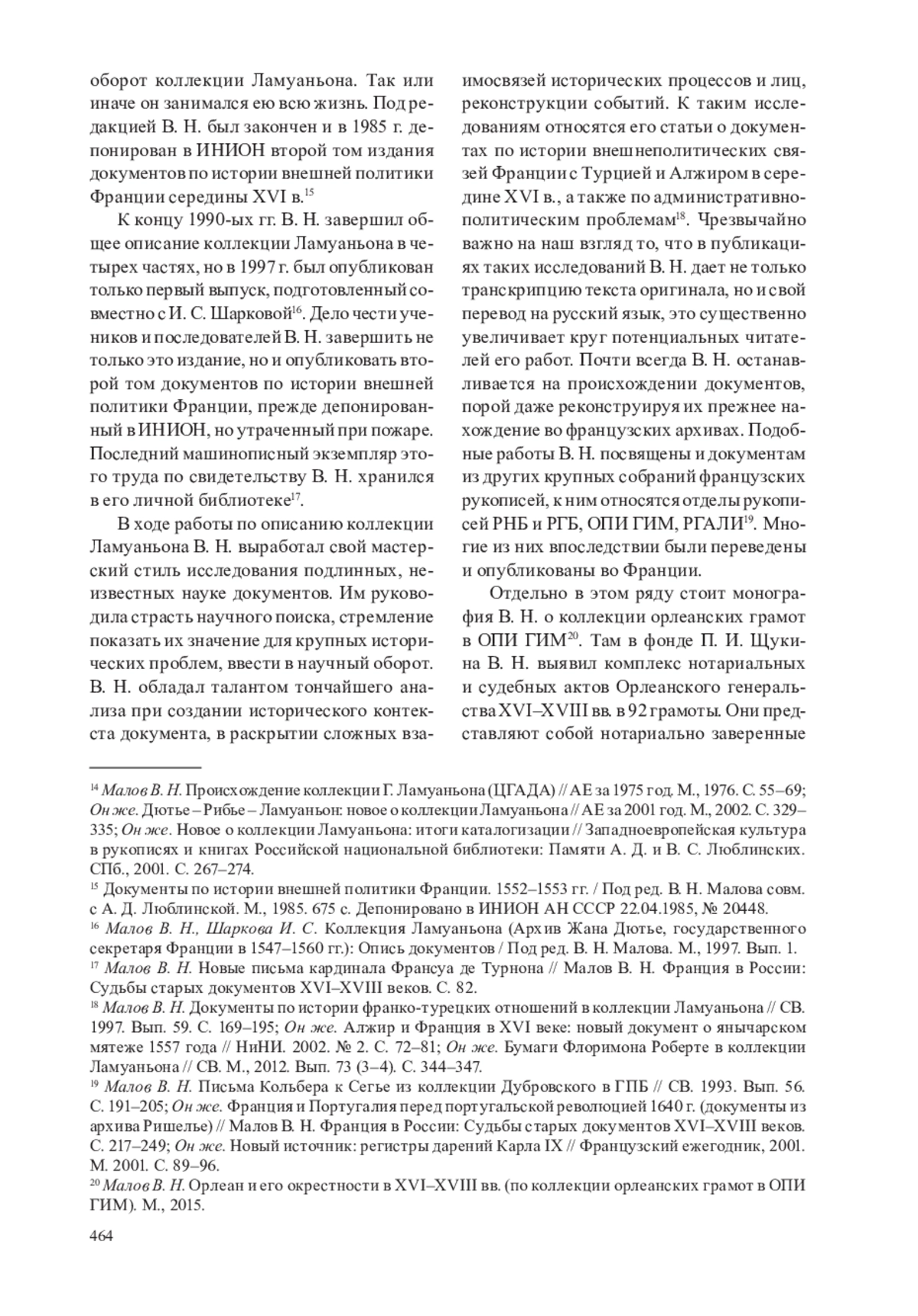 19. Малов В. Н. Бумаги Флоримона Роберте в коллекции Ламуаньона // Средние века. М., 2012. Вып. 73 (3-4). С. 344-347.