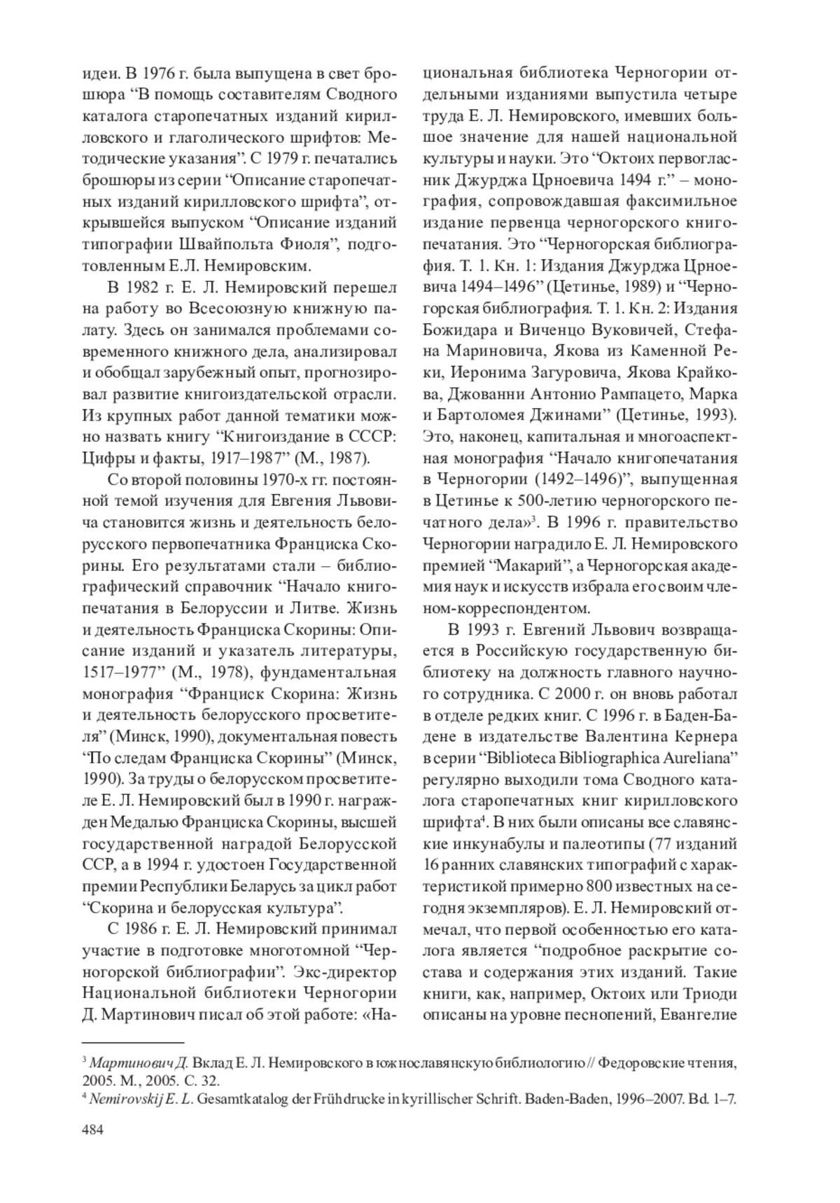 7. Мартинович Д. Вклад Е. Л. Немировского в южнославянскую библиологию // Федоровские чтения, 2005. М., 2005. С. 32.