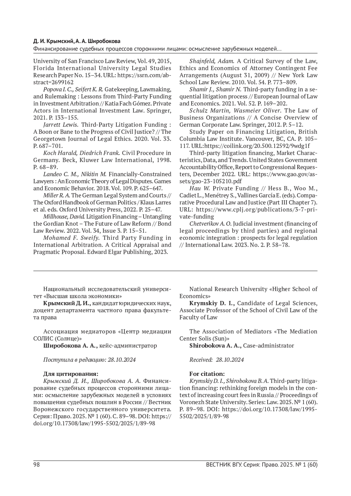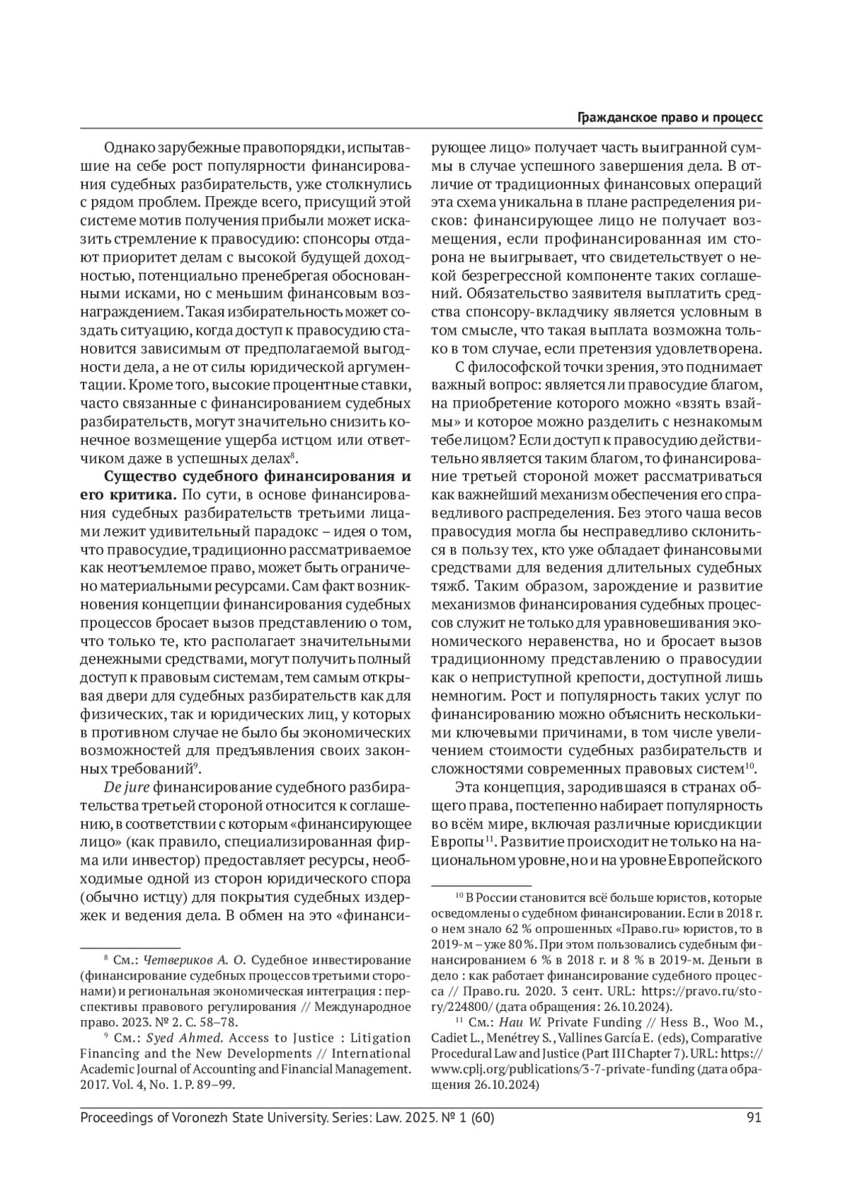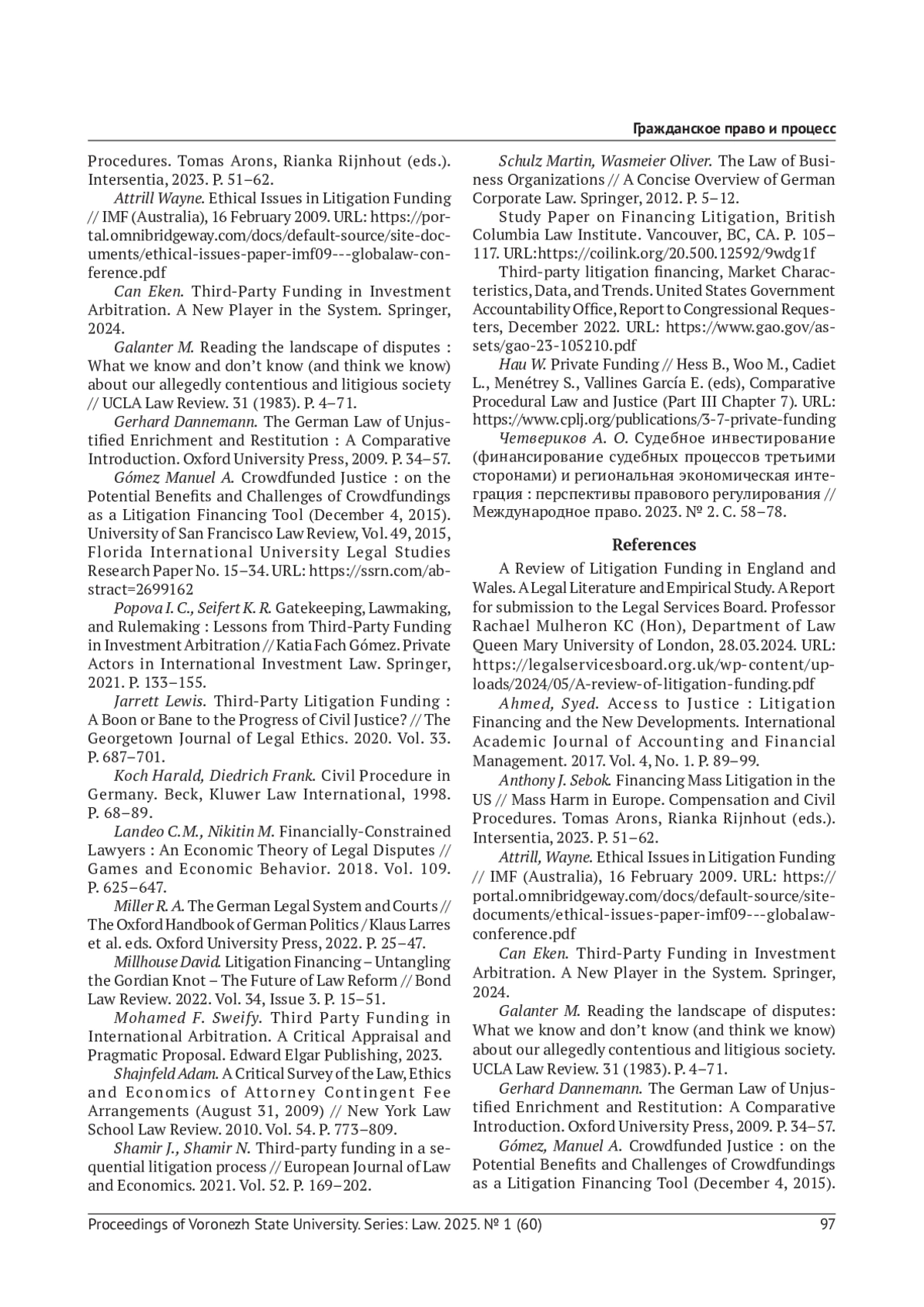 2. Ahmed Syed. Access to Justice: Litigation Financing and the New Developments // International Academic Journal of Accounting and Financial Management. 2017. Vol. 4, No. 1. P. 89-99.