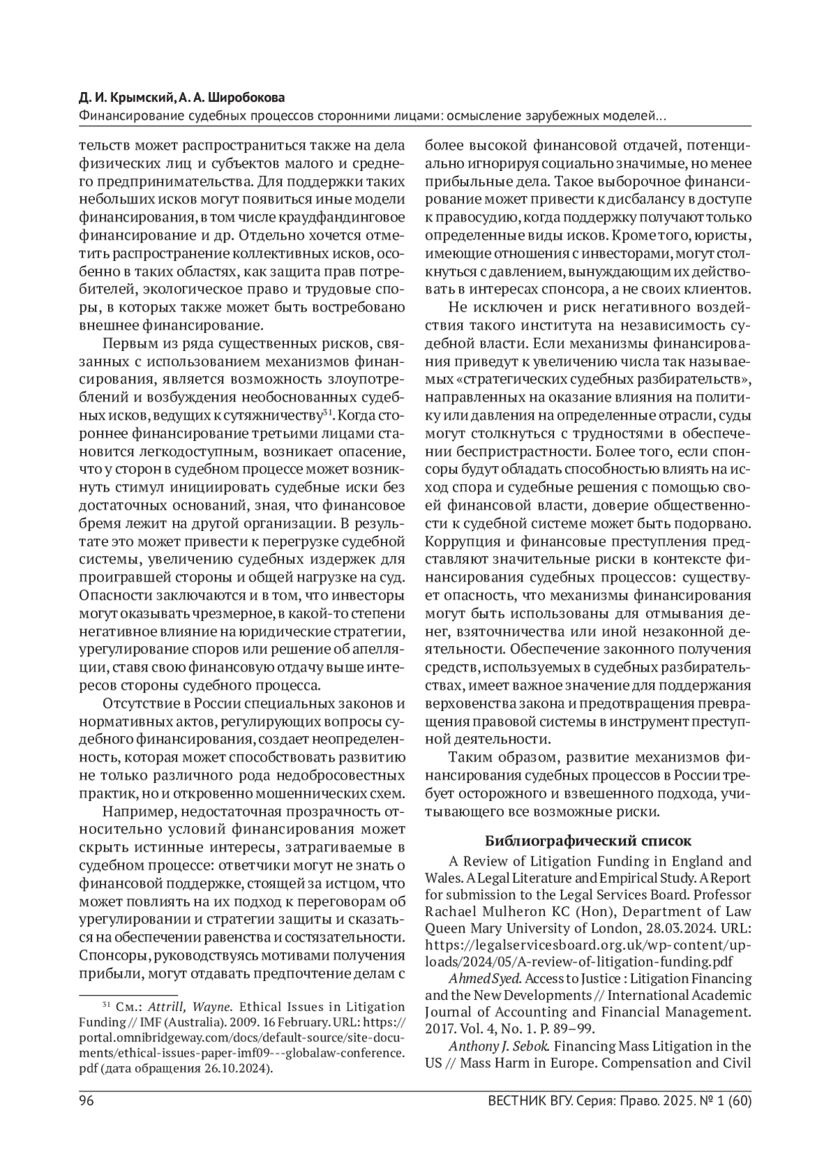 4. Attrill Wayne. Ethical Issues in Litigation Funding // IMF (Australia), 16 February 2009. URL: https://portal.omnibridgeway.com/docs/default-source/site-documents/ethical-issues-paper-imf09-globalaw-conference.pdf.