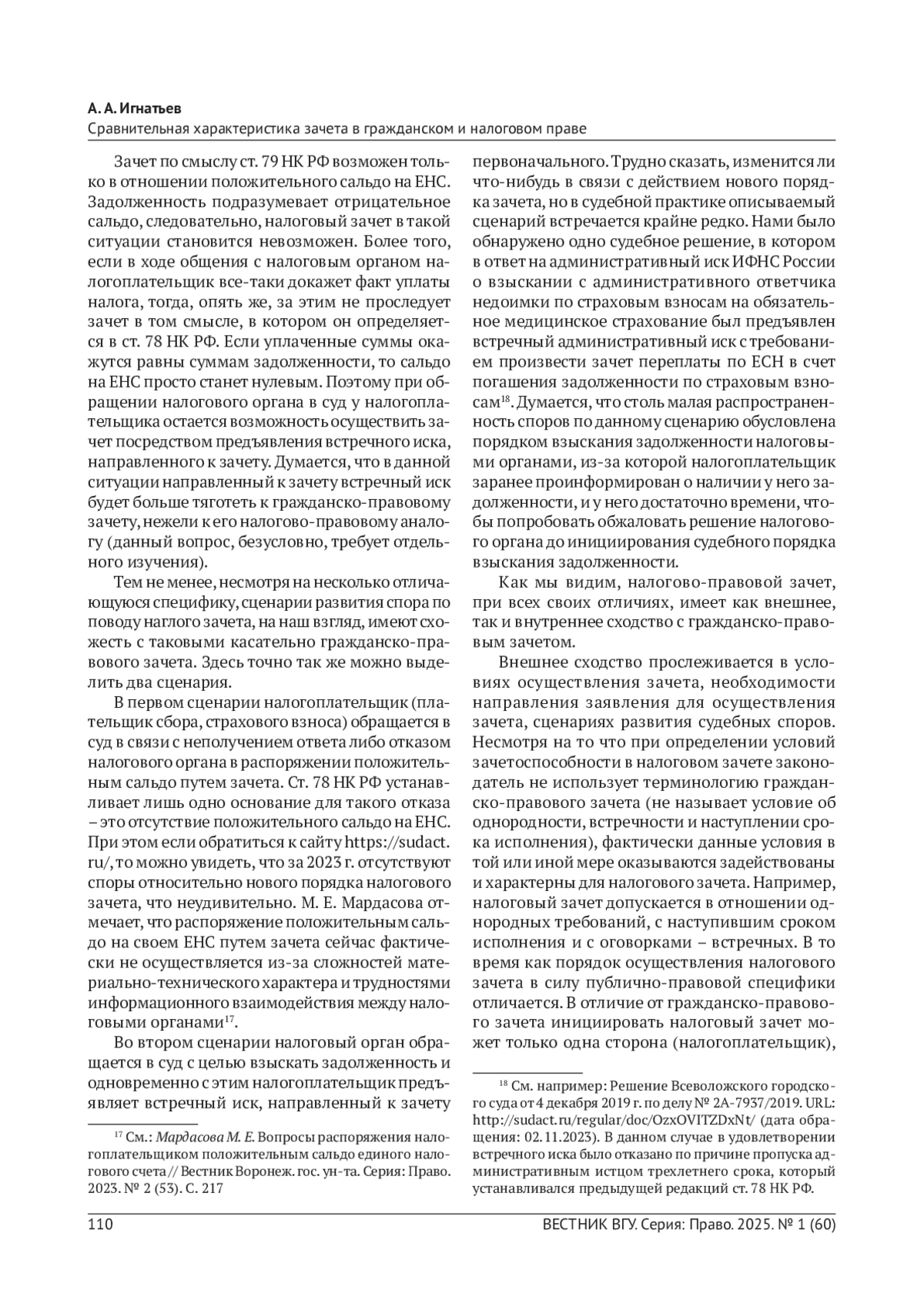 6. Мардасова М. Е. Вопросы распоряжения налогоплательщиком положительным сальдо единого налогового счета // Вестник Воронеж. гос. ун-та. Серия: Право. 2023. № 2 (53). С. 211-217.
