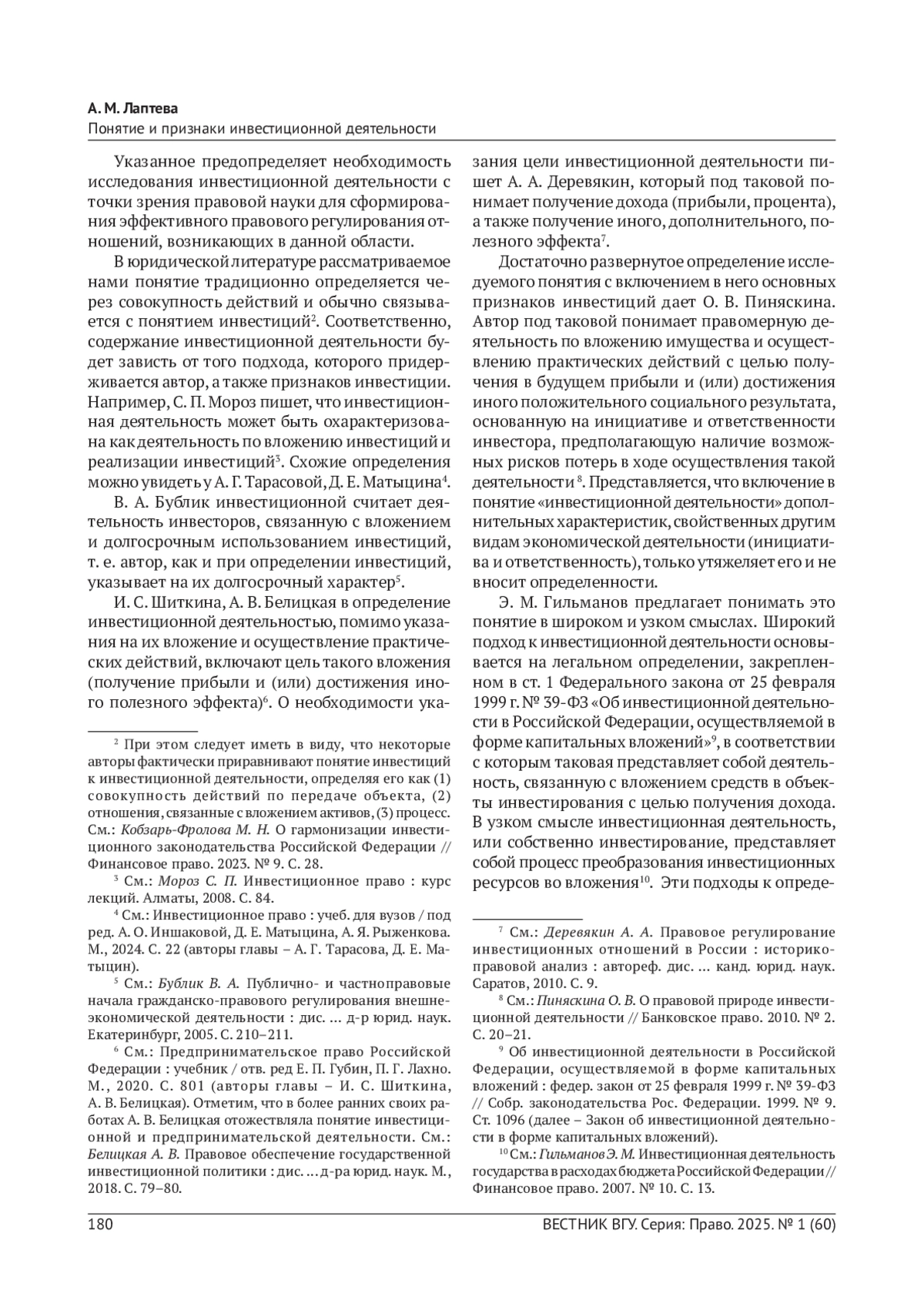 15. Лисица В. Н. Юридические признаки инвестиционной деятельности // Предпринимательское право. Приложение “Бизнес и право в России и за рубежом”. 2013. № 1.