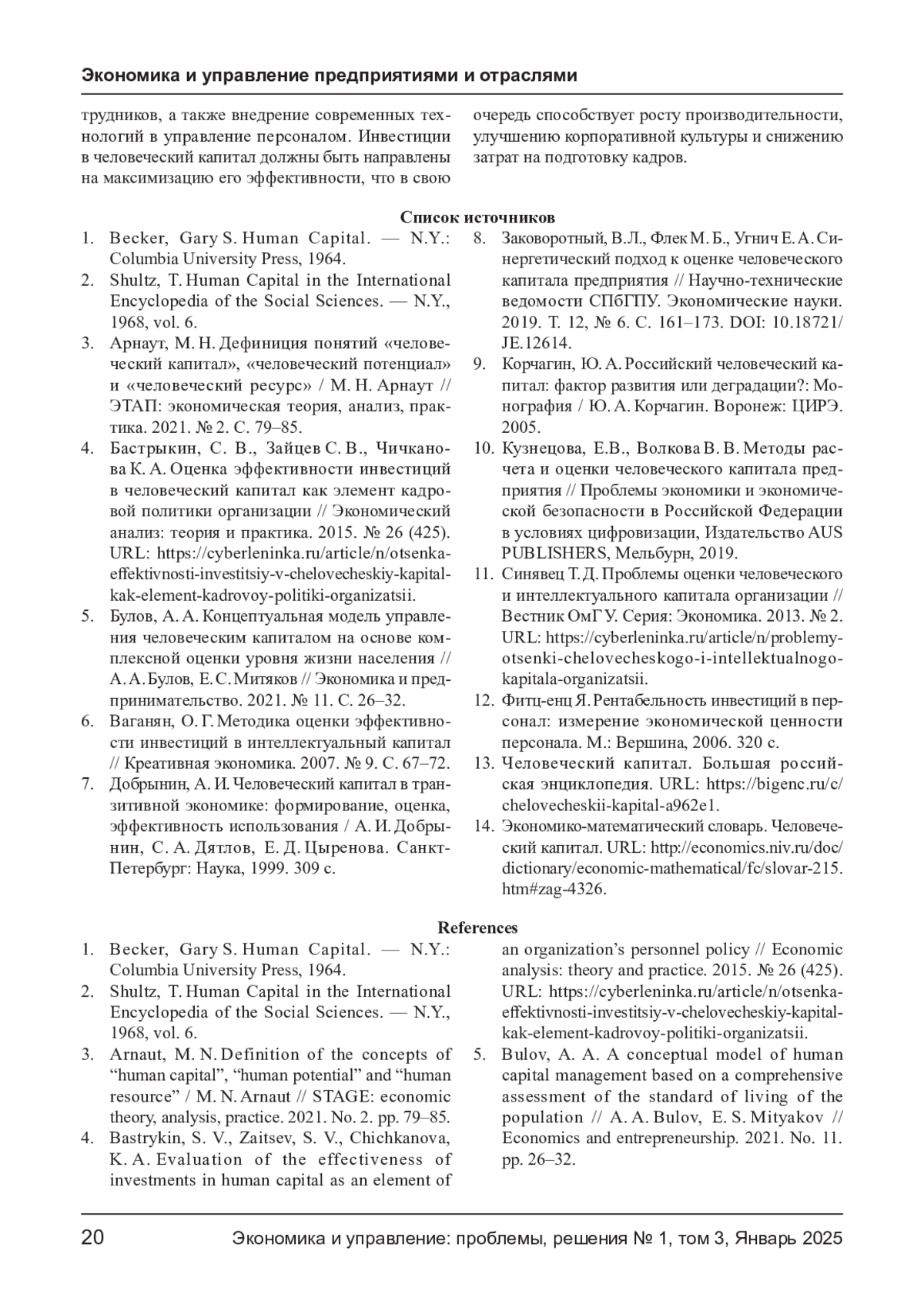 1. Becker, Gary S. Human Capital. - N.Y.: Columbia University Press, 1964.
