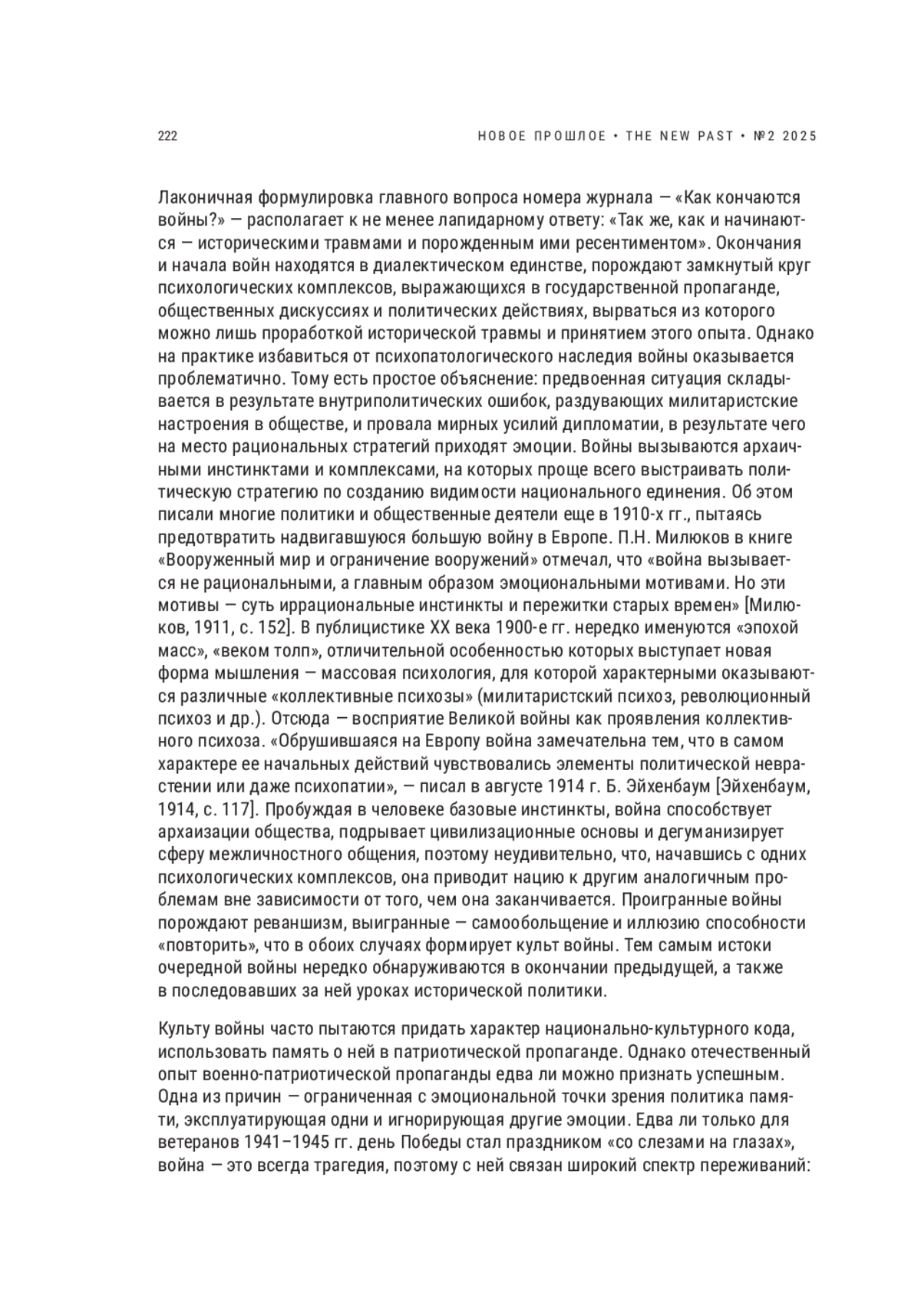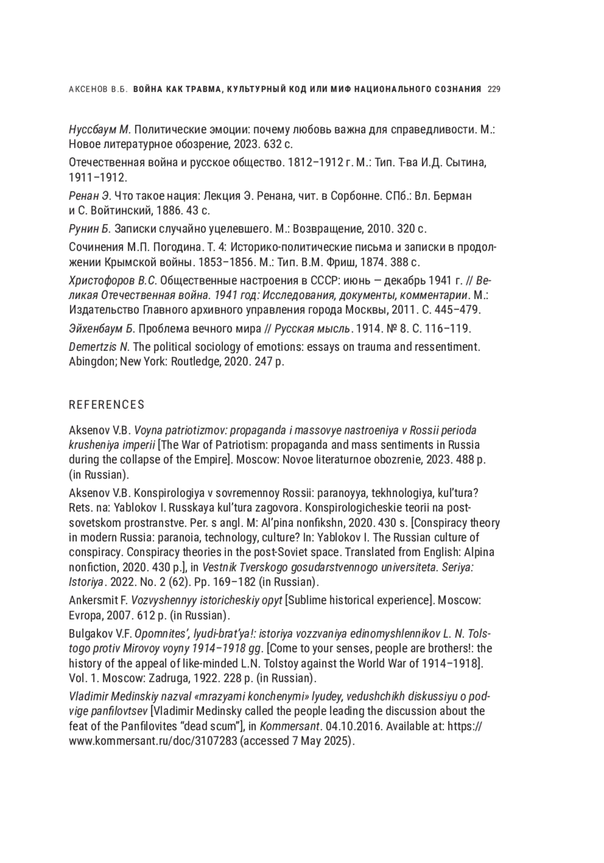 АКСЕНОВ В. Б. ВОЙНА КАК ТРАВМА, КУЛЬТУРНЫЙ КОД ИЛИ МИФ НАЦИОНАЛЬНОГО СОЗНАНИЯ // НОВОЕ ПРОШЛОЕ. 2025. № 2