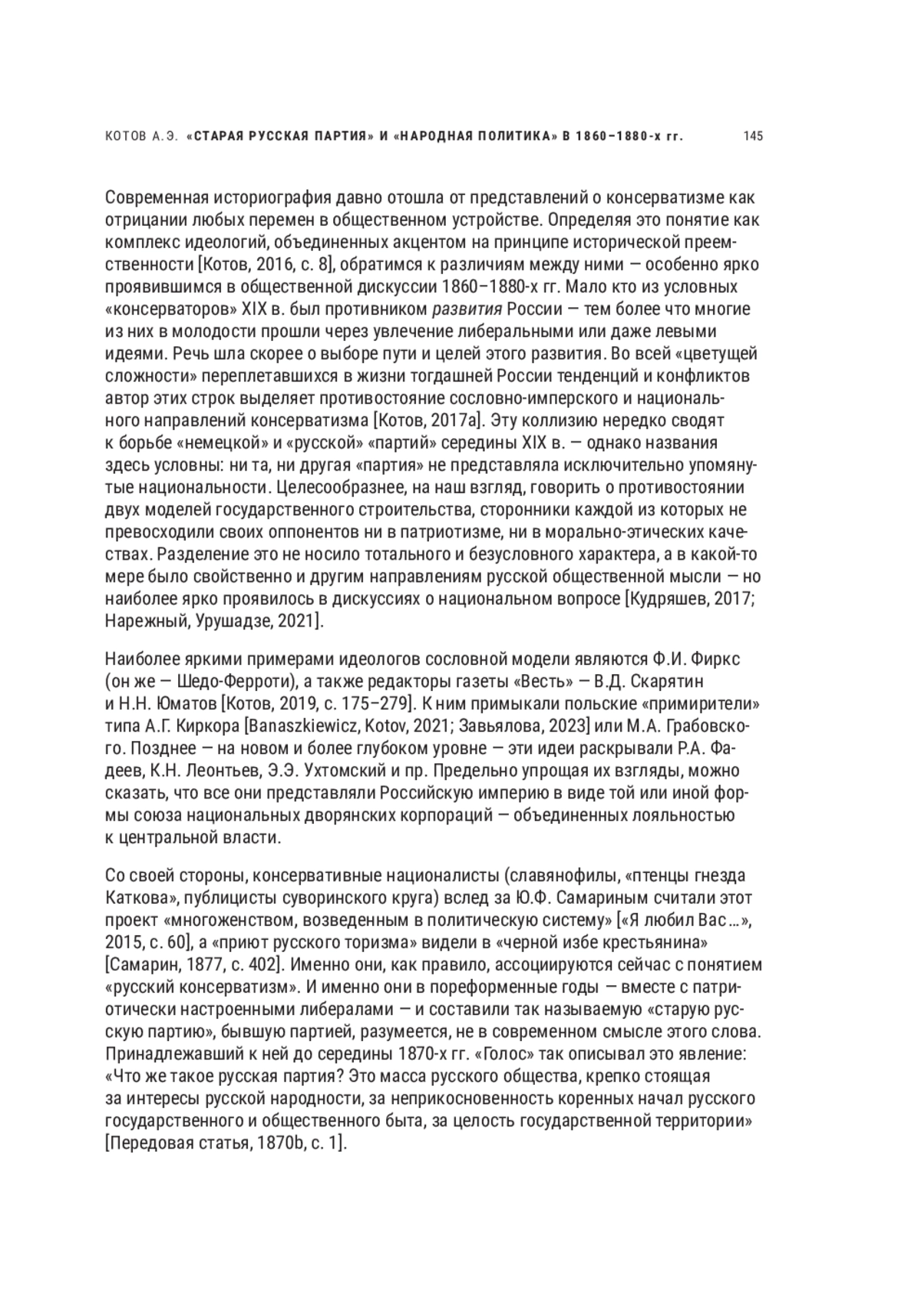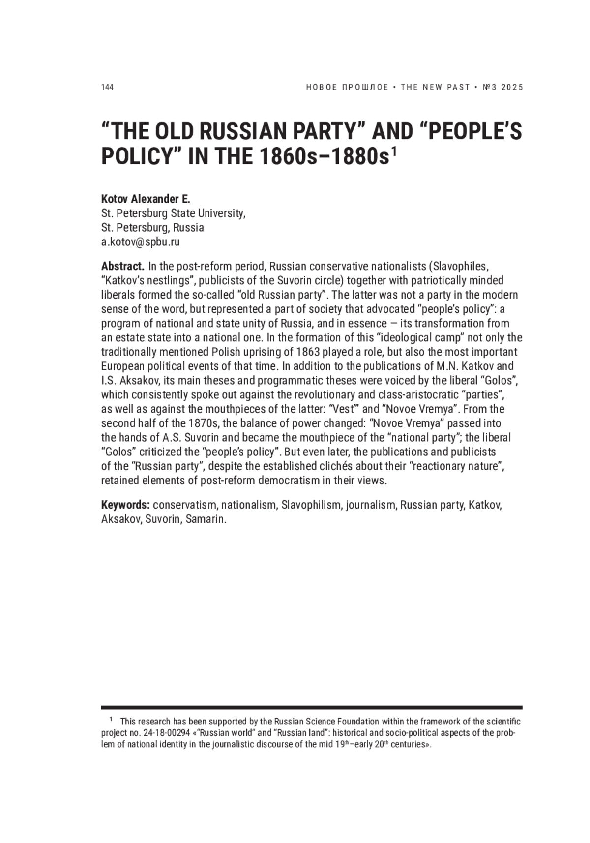 51. Kotov A.E. “Nestlings From the Katkov Brood” in the Late 1880s: Nationalists in the Empire // Social Sciences. 2023. Vol. 54. Pp. 106-120.