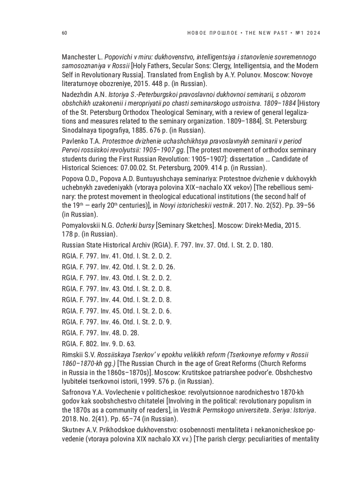 21. Скутнев А.В. Приходское духовенство: особенности менталитета и неканоническое поведение (вторая половина XIX начало XX вв.) // Новый исторический вестник. 2007. № 16. С. 66-69. EDN: KWJTZJ