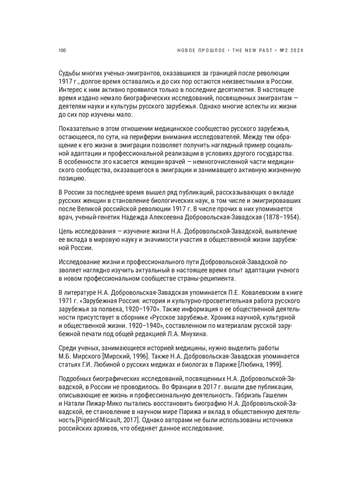 34. Pigeard-Micault N., Gachelin G. Nadine Dobrovolskaïa-Zavadskaïa, une Russe à la Fondation Curie, une vision singulière de la génétique dans le cancer (1921-1954) // Canadian Bulletin of Medical History. 2017. Vol. 34. Iss. 2. Pp. 465-495.