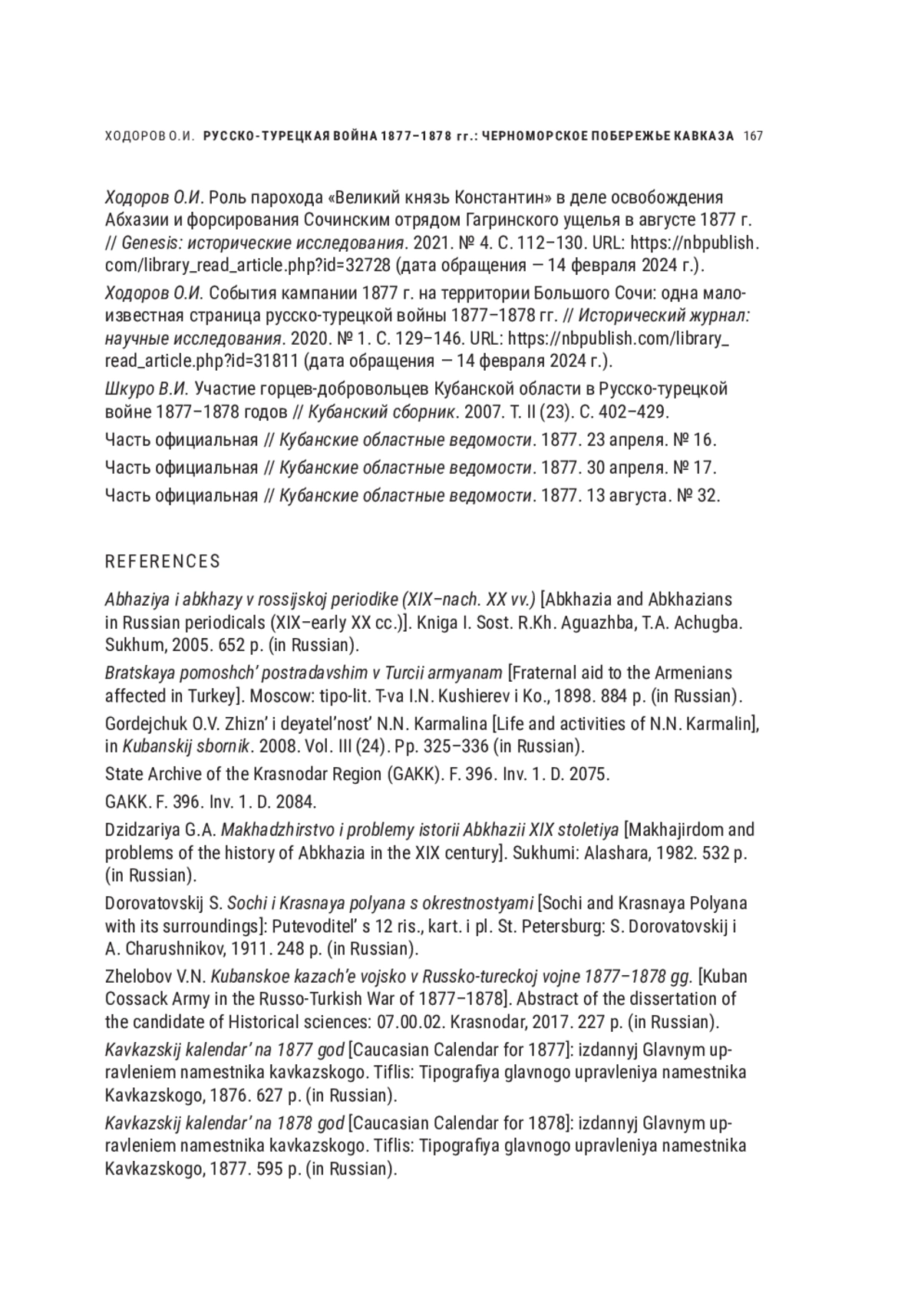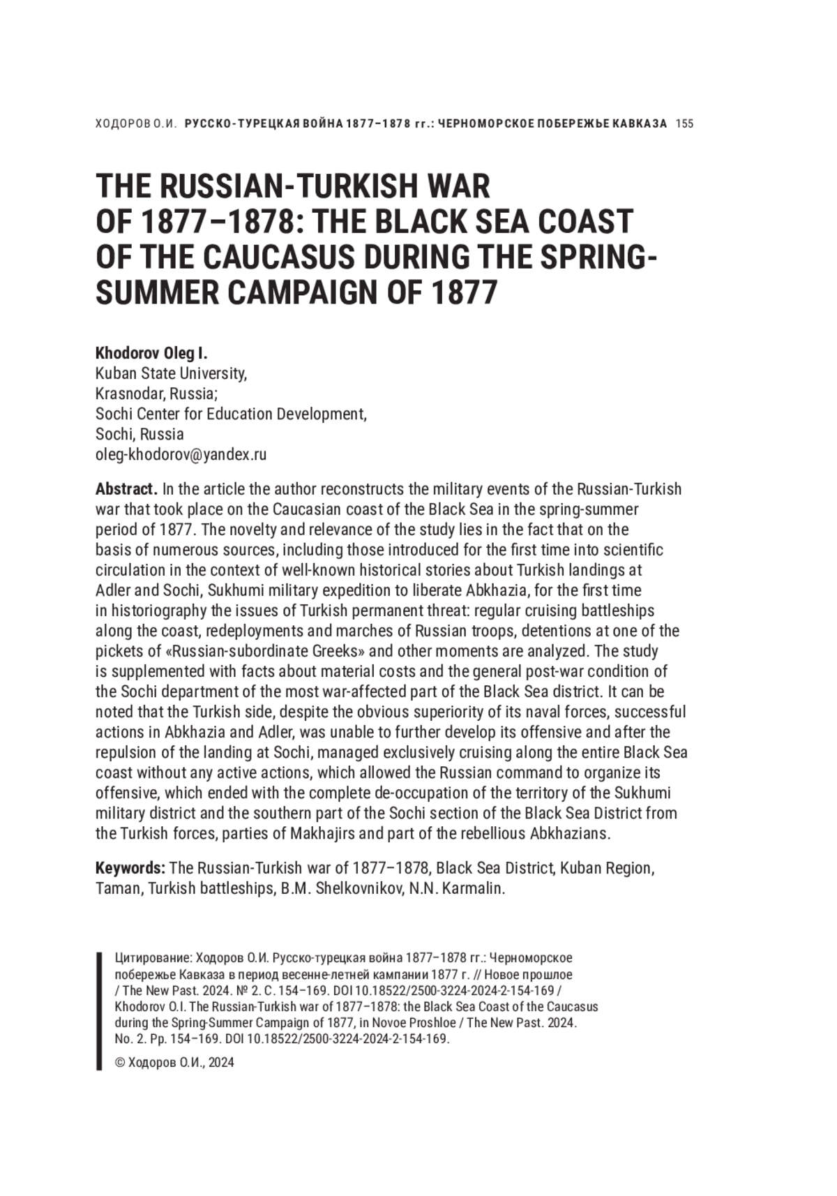 ХОДОРОВ О. И. РУССКО-ТУРЕЦКАЯ ВОЙНА 1877-1878 ГГ.: ЧЕРНОМОРСКОЕ ПОБЕРЕЖЬЕ КАВКАЗА В ПЕРИОД ВЕСЕННЕ-ЛЕТНЕЙ КАМПАНИИ 1877 Г // НОВОЕ ПРОШЛОЕ. 2024. № 2