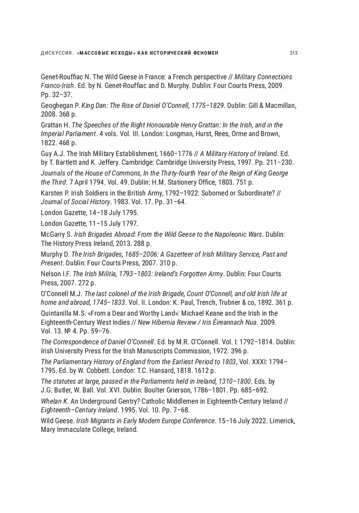 8. Cagigal E. Irish migration to early modern Biscay // Archivium Hibernicum. 2018. Vol. 71. Pp. 158-174.