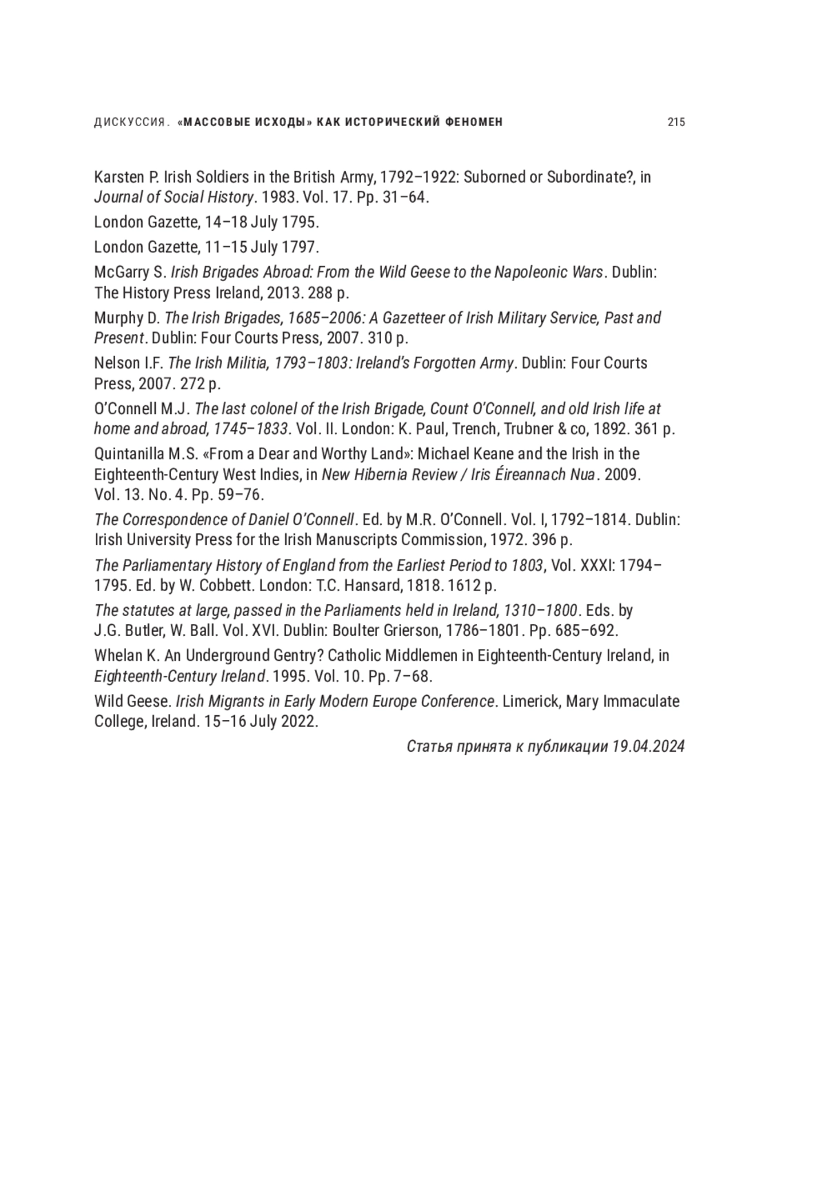 24. McGarry S. Irish Brigades Abroad: From the Wild Geese to the Napoleonic Wars. Dublin: The History Press Ireland, 2013. 288 p.