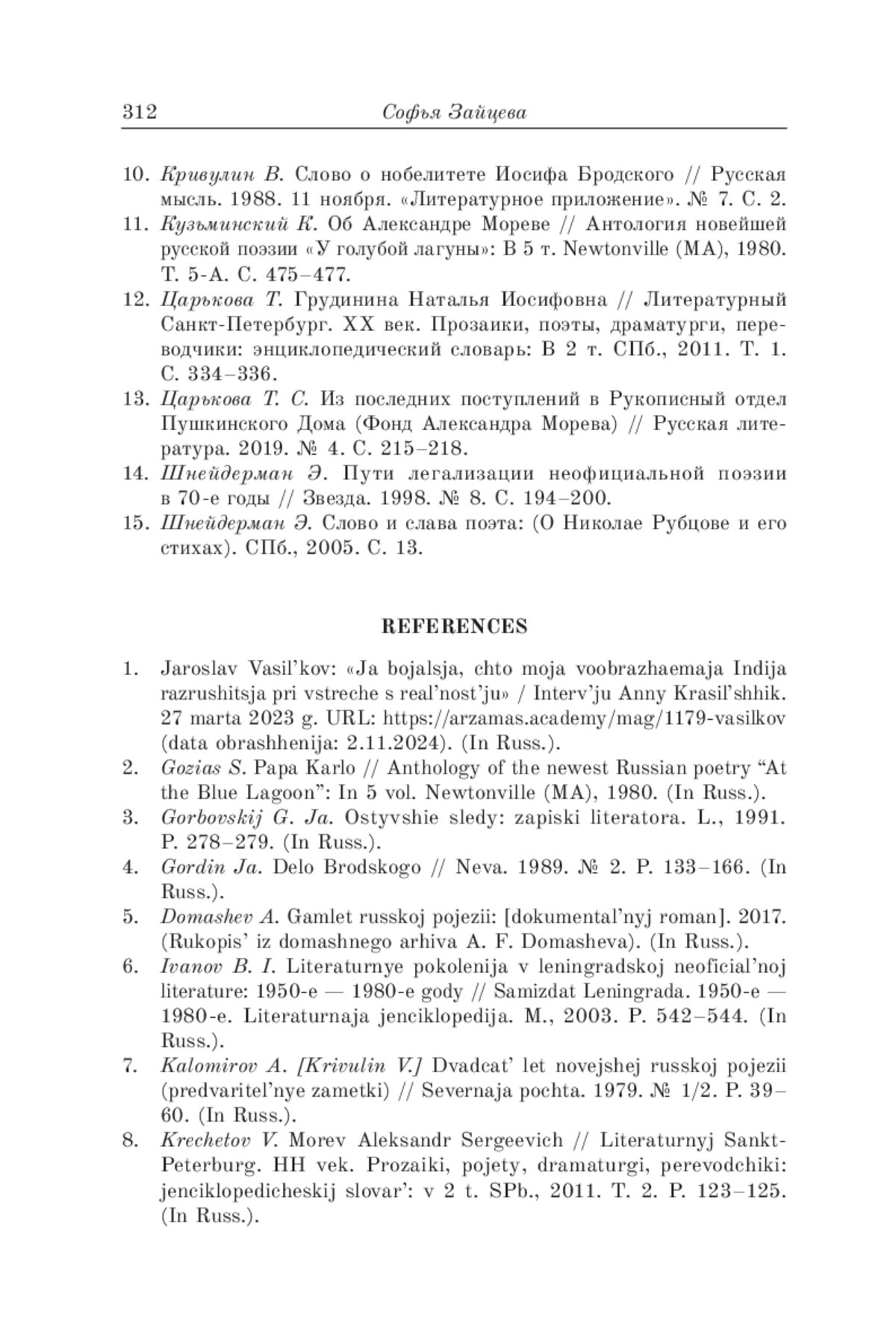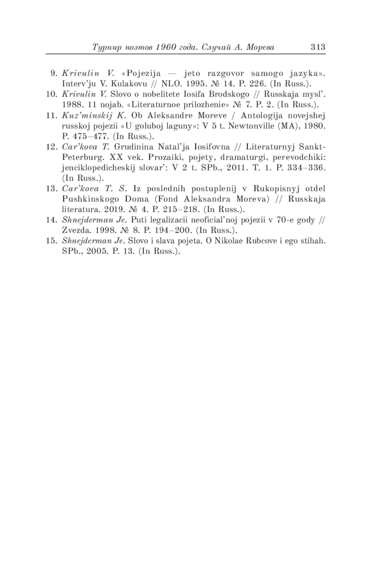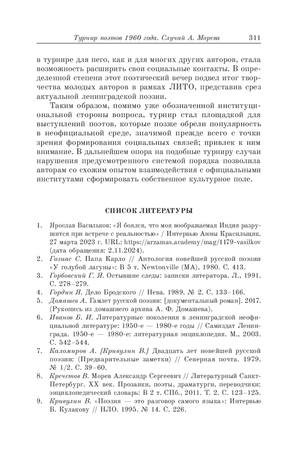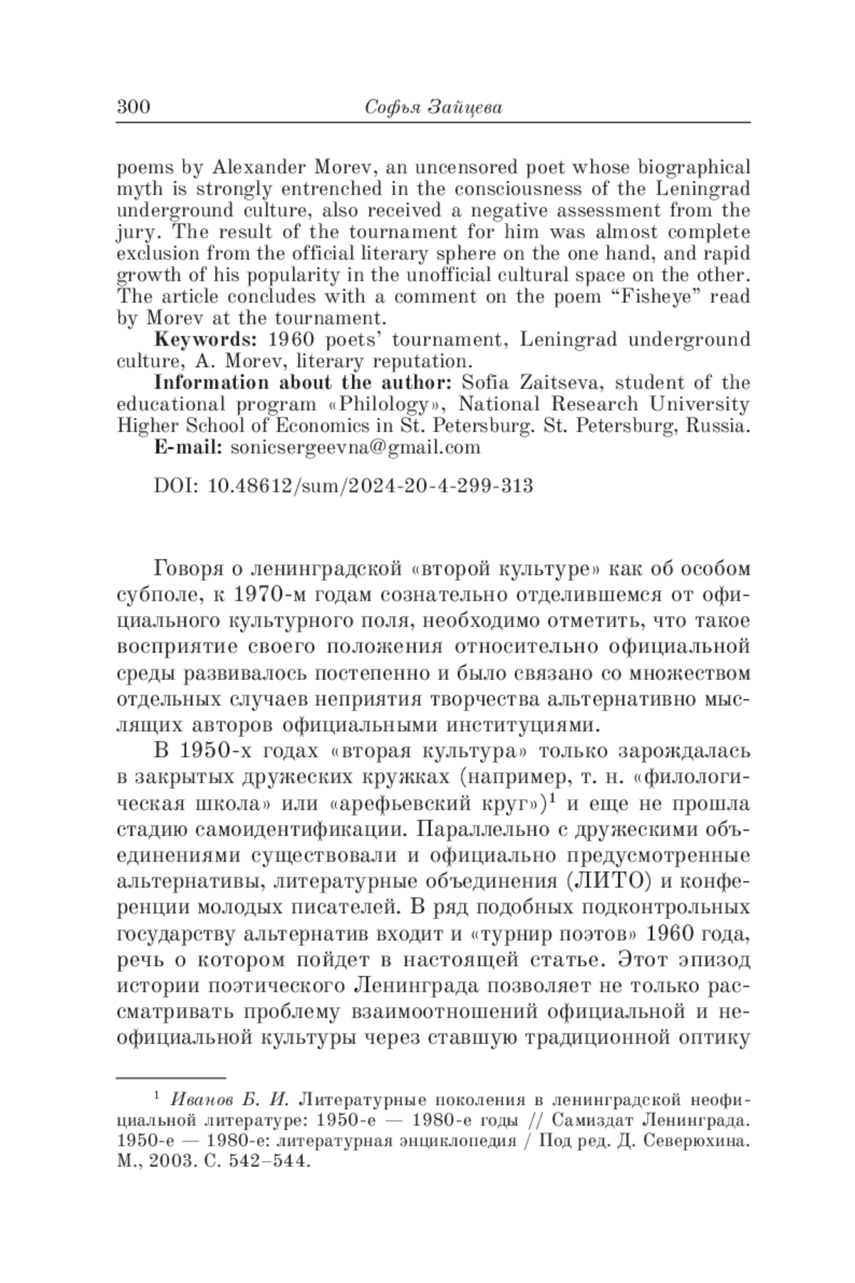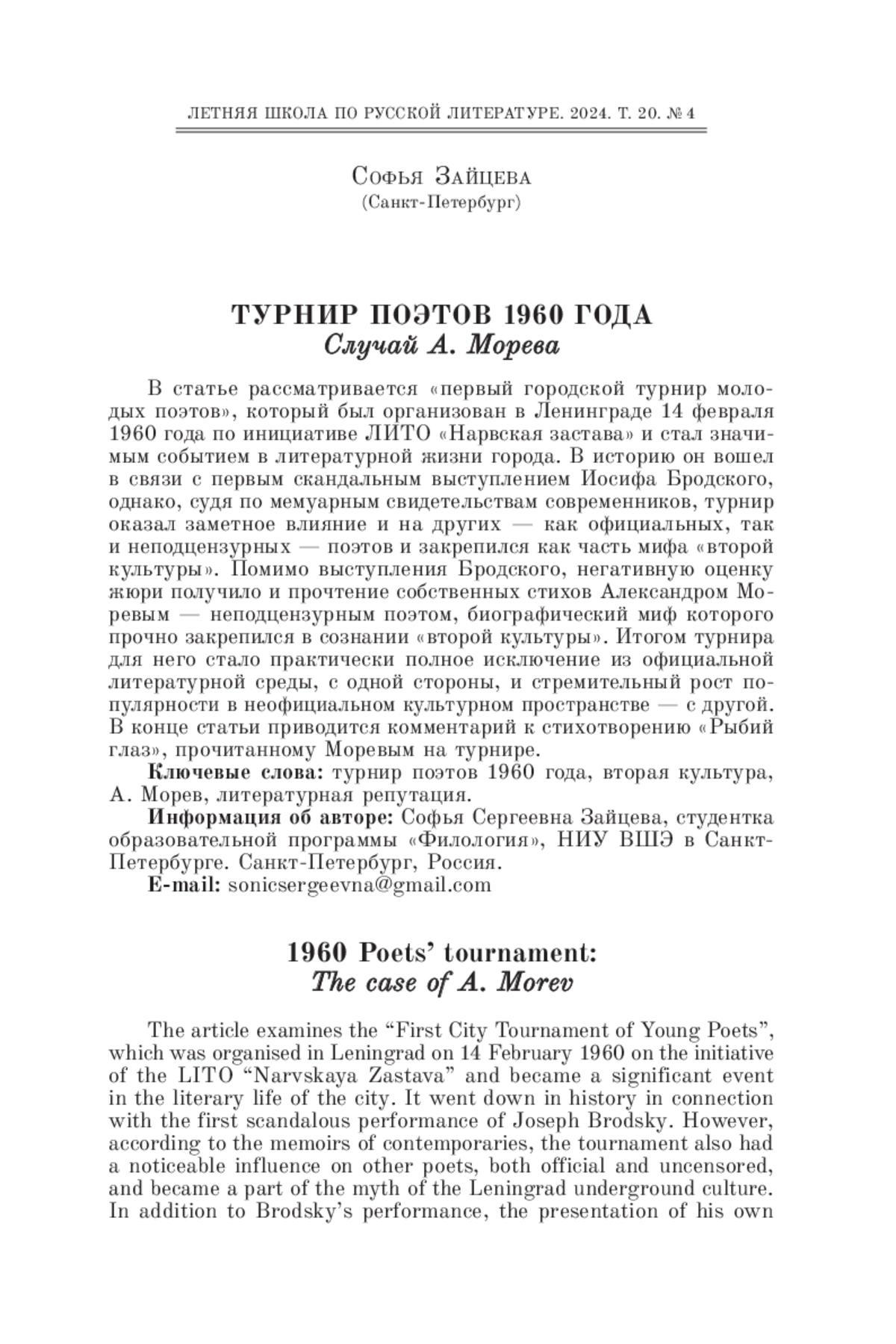 ЗАЙЦЕВА С. С. ТУРНИР ПОЭТОВ 1960 ГОДА СЛУЧАЙ А. МОРЕВА // ЛЕТНЯЯ ШКОЛА ПО РУССКОЙ ЛИТЕРАТУРЕ. 2024. № 4, ТОМ 20