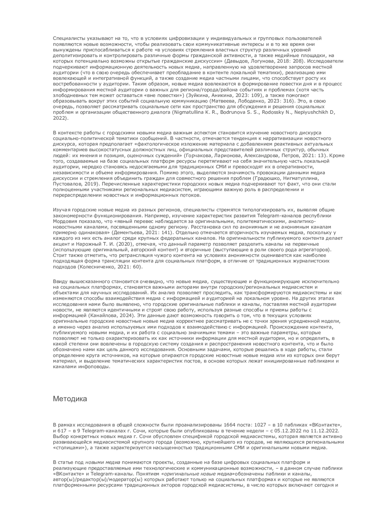 КАНАЙЛОВА А. О. ИСТОЧНИКИ ИНФОРМАЦИИ И ТЕМАТИЧЕСКИЕ ХАРАКТЕРИСТИКИ ПОСТОВ НА СОЦИАЛЬНО ЗНАЧИМЫЕ ТЕМЫ В ГОРОДСКИХ НОВОСТНЫХ НОВЫХ МЕДИА // МЕДИАСКОП. 2025. № 1