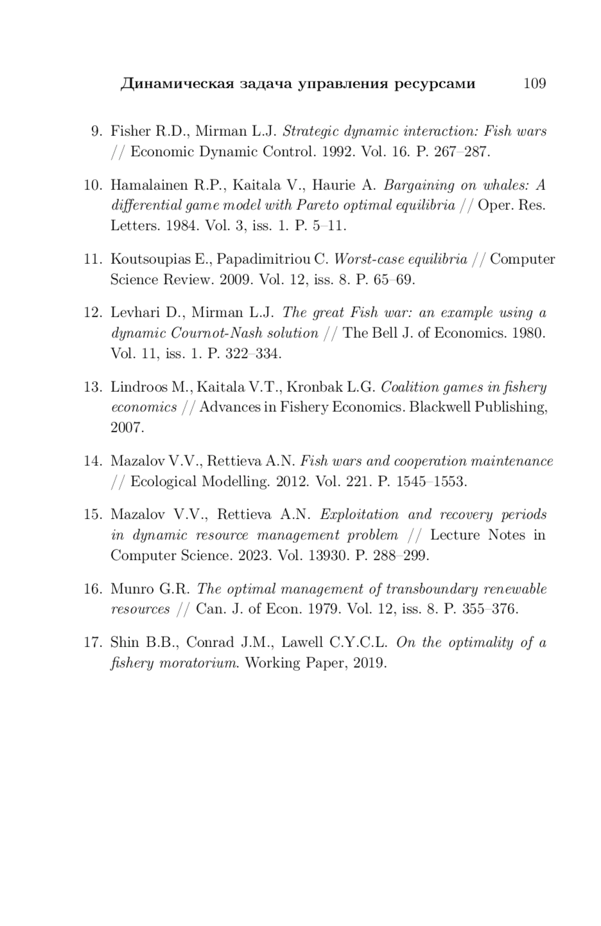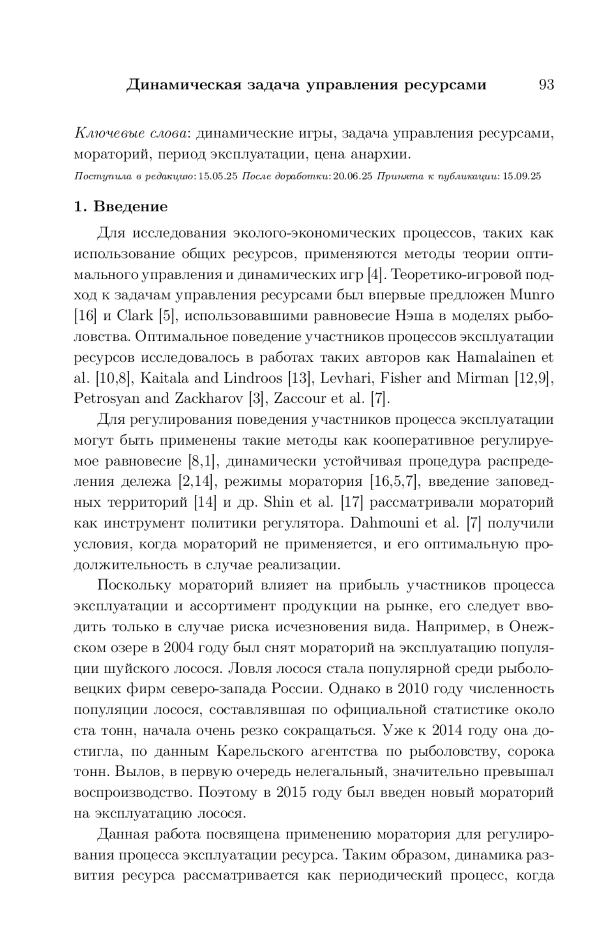 Ключевые фразы: динамические игры, задача управления ресурсами, мораторий, период эксплуатации, цена анархии