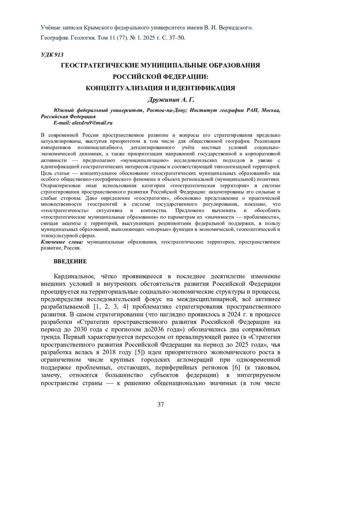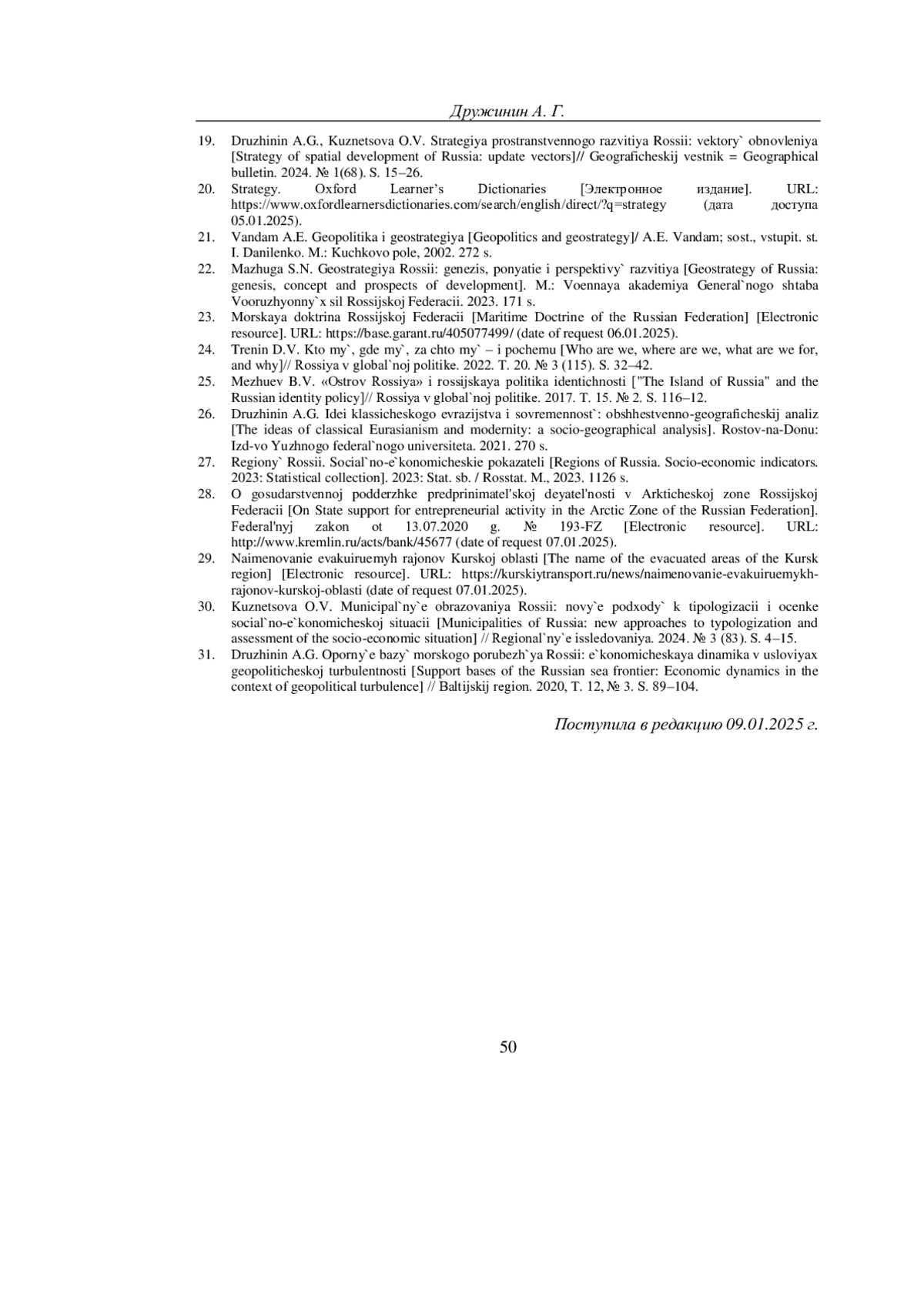 7. Дружинин А.Г. Геополитические ориентиры стратегии пространственного развития России // Федерализм. 2024. Т. 29. № 4 (116). С. 5-22. EDN: PGMPSR