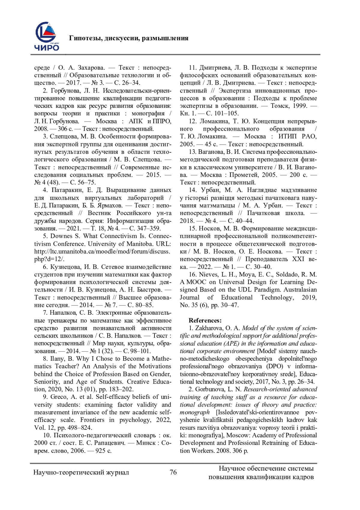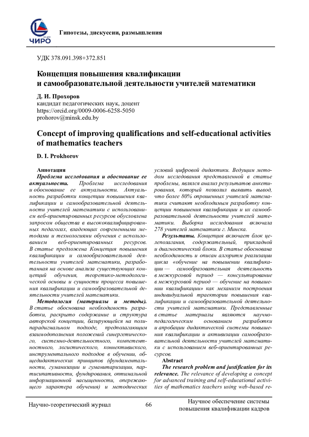 Статья: КОНЦЕПЦИЯ ПОВЫШЕНИЯ КВАЛИФИКАЦИИ И САМООБРАЗОВАТЕЛЬНОЙ ДЕЯТЕЛЬНОСТИ УЧИТЕЛЕЙ МАТЕМАТИКИ (2024)