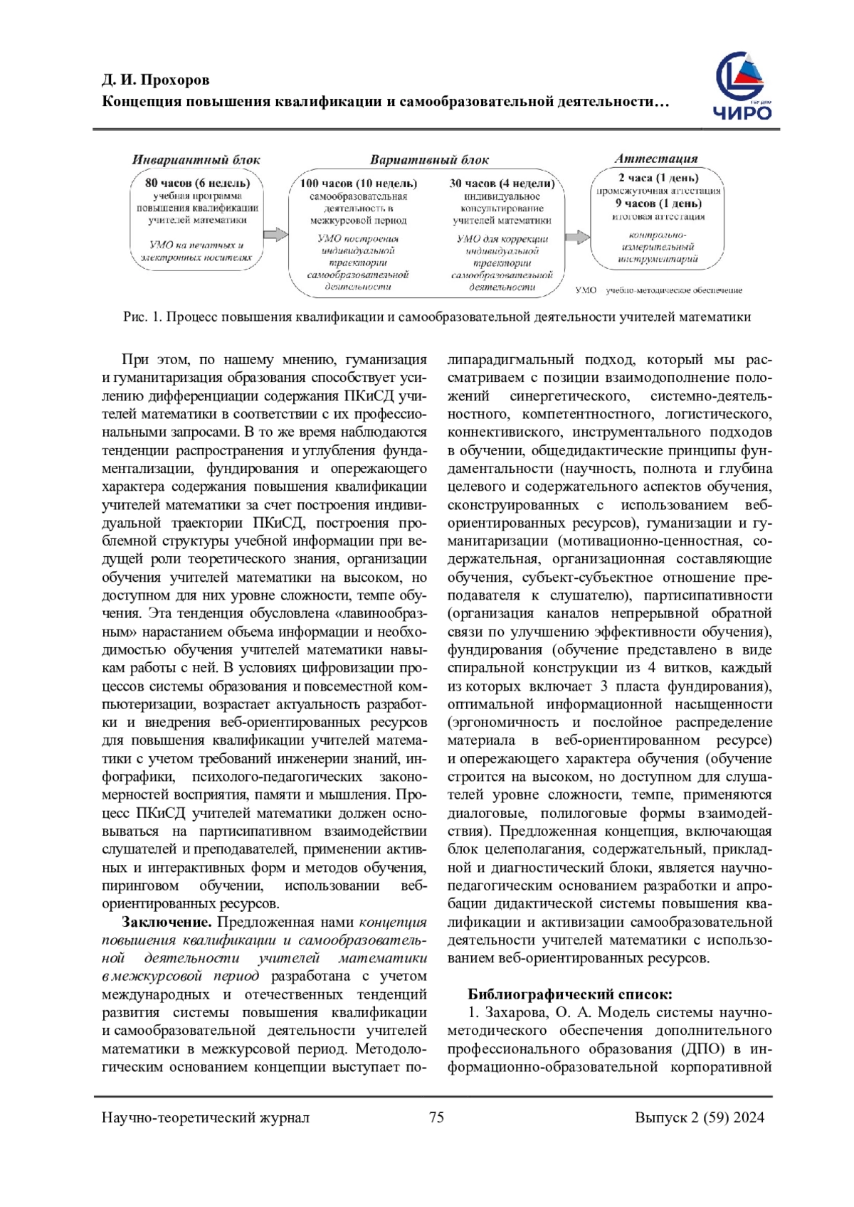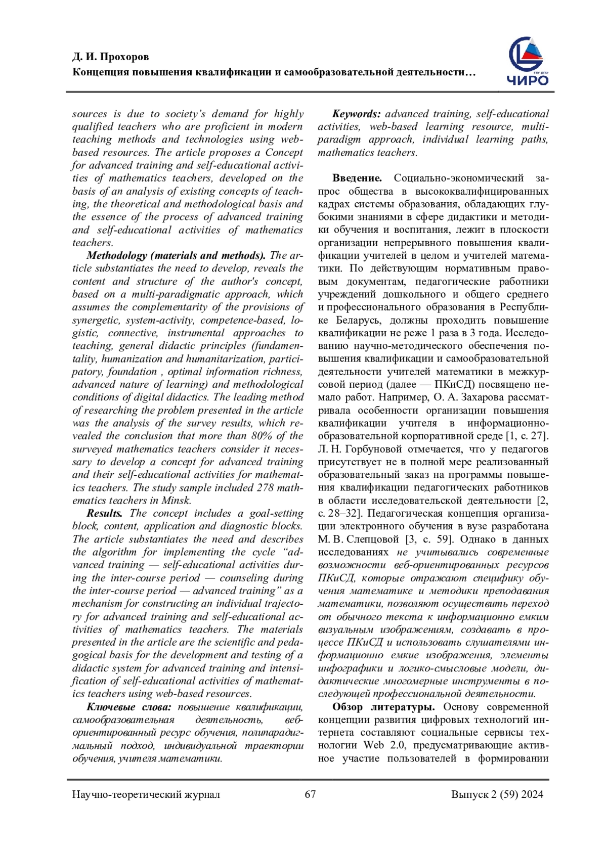 ПРОХОРОВ Д. И. КОНЦЕПЦИЯ ПОВЫШЕНИЯ КВАЛИФИКАЦИИ И САМООБРАЗОВАТЕЛЬНОЙ ДЕЯТЕЛЬНОСТИ УЧИТЕЛЕЙ МАТЕМАТИКИ // НАУЧНОЕ ОБЕСПЕЧЕНИЕ СИСТЕМЫ ПОВЫШЕНИЯ КВАЛИФИКАЦИИ КАДРОВ. 2024. № 2 (59)