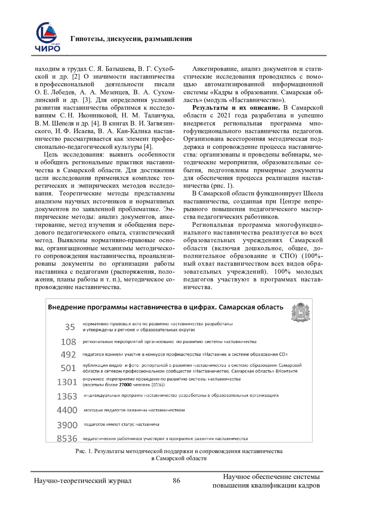 4. Мясищева, Е. Н. Наставничество в сфере образования - фактор развития региональной системы образования / Е. Н. Мясищева, Ж. М. Яхтанигова, Е. В. Чуприкова, К. С. Лагода. - Текст: непосредственный // Проблемы современного образования. - 2021. - № 5. - С. 91-100. EDN: APEEFZ