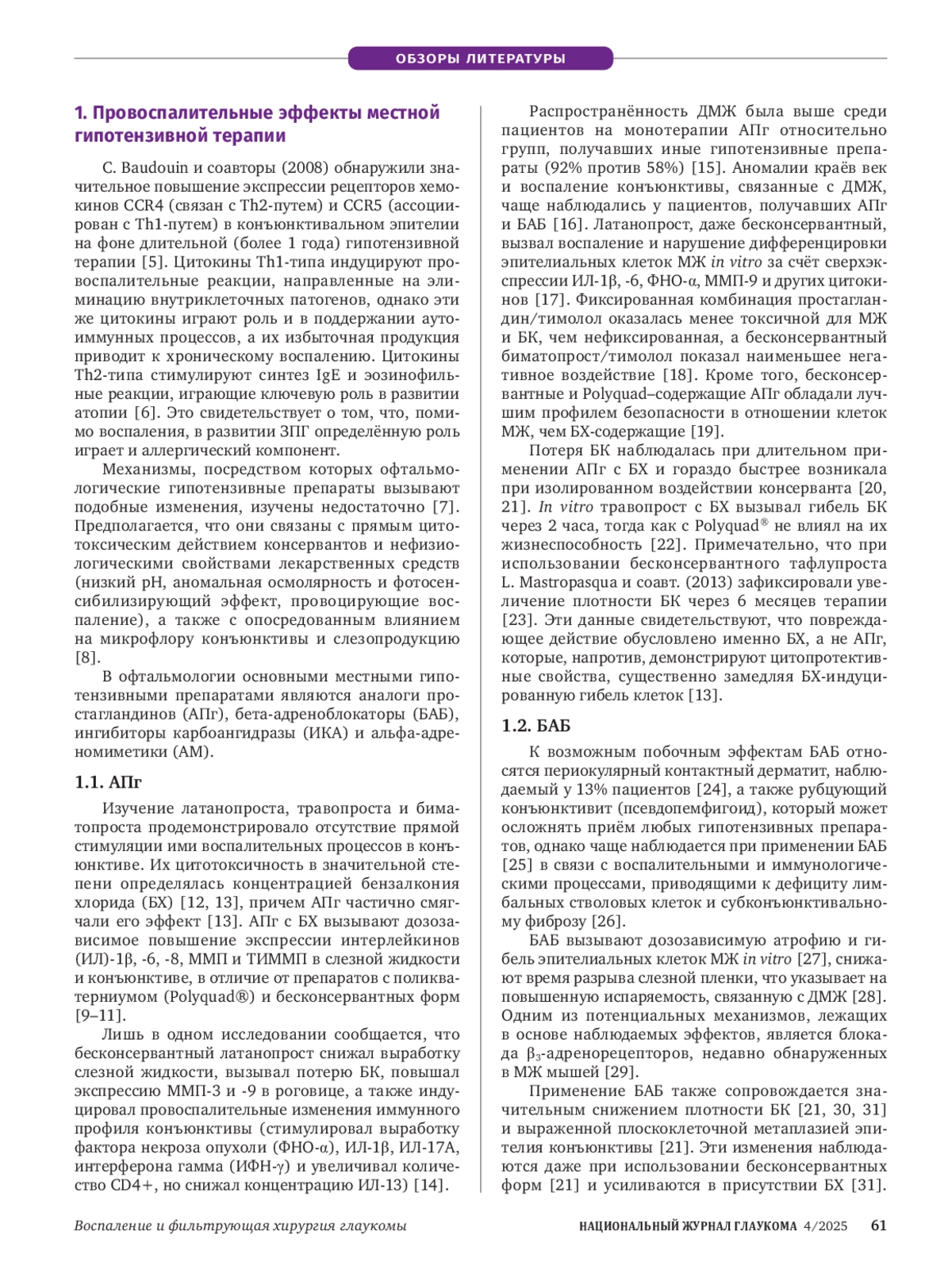 Ключевые фразы: глаукома, трабекулэктомия, филь- трующая хирургия, заболевания глазной поверхности, воспаление, гипотензивная терапия, консерванты, про- воспалительные факторы