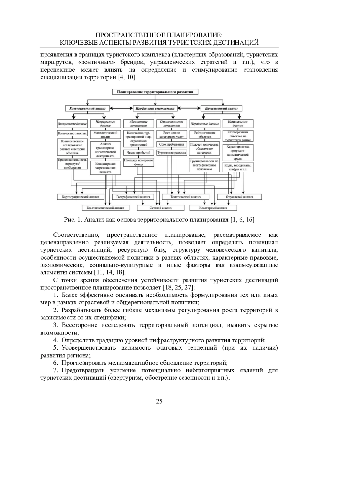В статье описывается сущность пространственного планирования в контексте развития туристских дестинаций. Авторы рассматривают пространственное планирование, как неотъемлемую часть стратегирования территорий. Особое внимание уделяется аналитическому аспекту пространственного планирования развития туристских дестинаций, исследуется его роль как инструмента координации, рационализации и эффективности региональной политики в контексте повышения туристской привлекательности, раскрытия потенциала и совершенствования качества жизни. Статья отражает авторский взгляд на значение пространственного планирования в решении проблемы увеличения межрегиональных взаимодействий на почве развития туристского комплекса и смежных отраслей.