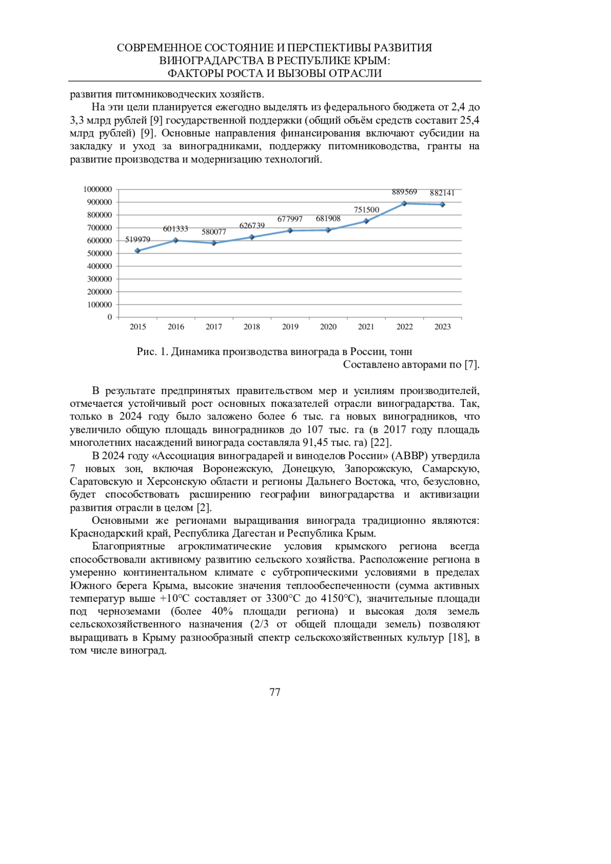 17. Свиридова А.Д., Власов А.И. Перспективы отечественного виноградарства (на примере Ростовской области и Республики Крым) // Экономика и экология территориальных образований. 2021. Т. 5. № 3. С. 74-86. DOI: 10.23947/2413-1474-2021-5-3-74-86 EDN: VVKKTS